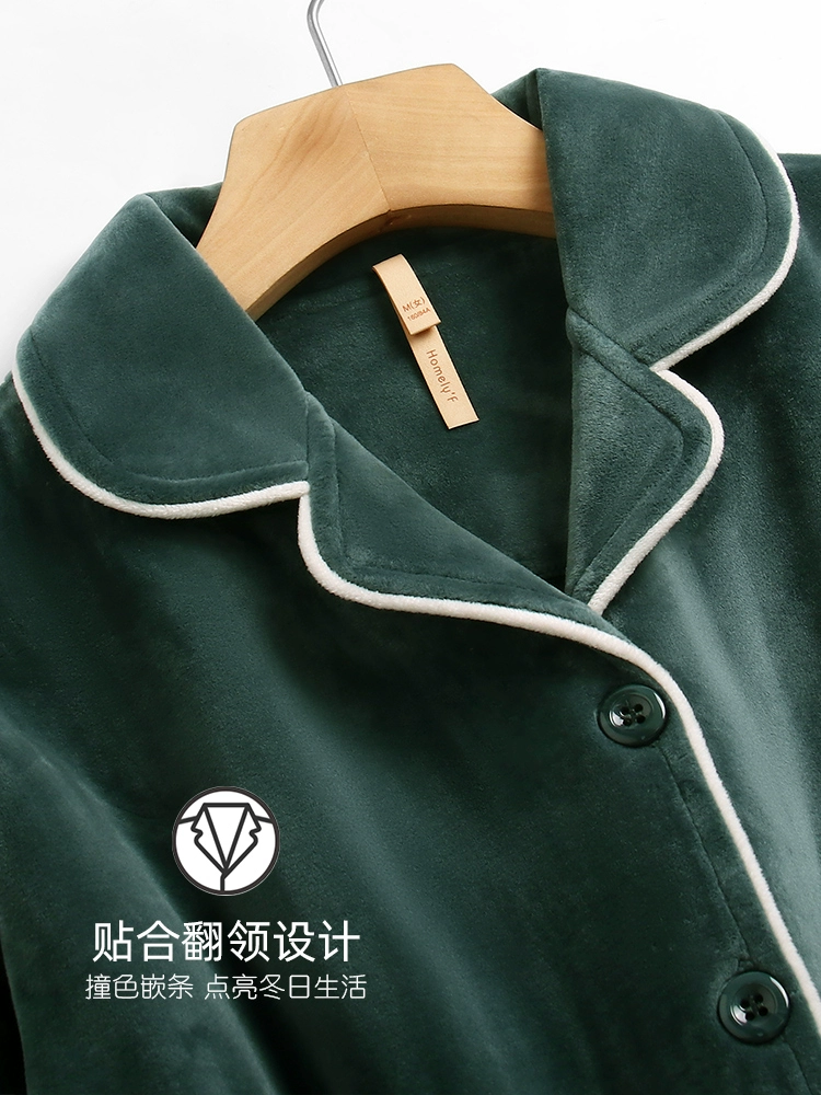 [Island Velvet] Carrefen Pajamas Women’s Autumn and Winter Style Winter Flannel Plus Velvet Thickened Coral Velvet Home Clothes