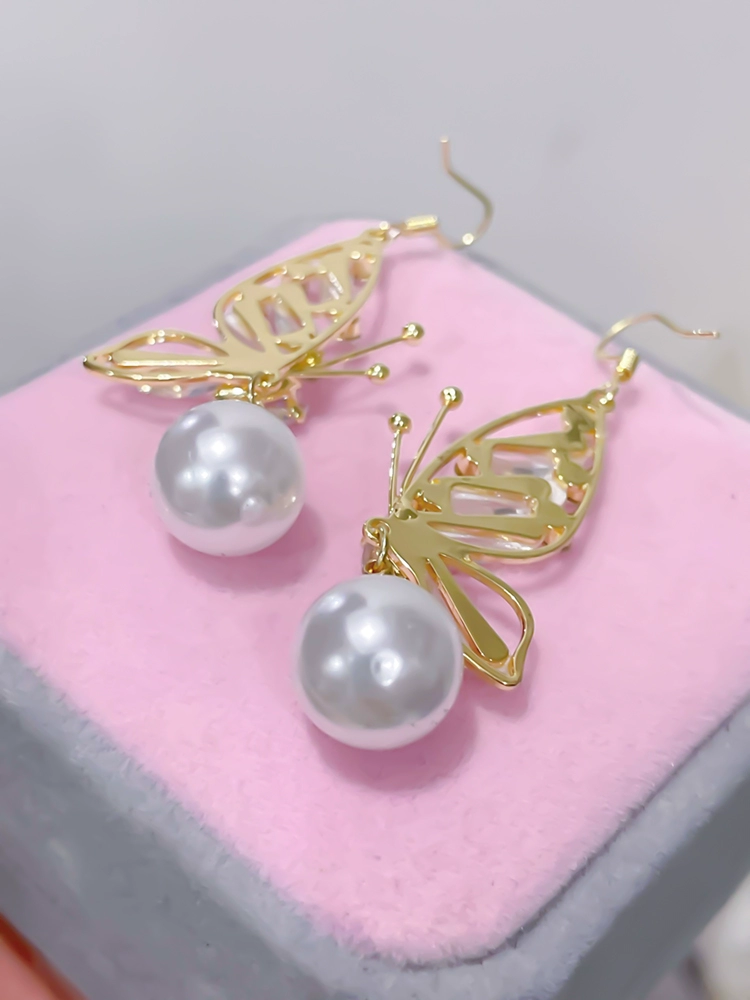 | nameOriginal | Glitter diamond pearl butterfly earrings light luxury temperament fairy-like earrings 2024 new trendy high-end earrings |