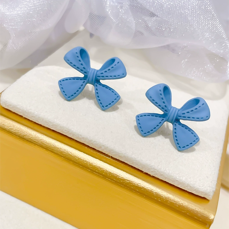 | nameOriginal | Morandi yellow and blue dotted edge bow earrings for women, high-end, candy-colored temperament small earrings, versatile earrings |