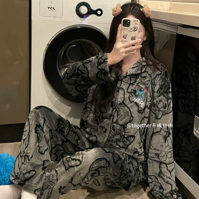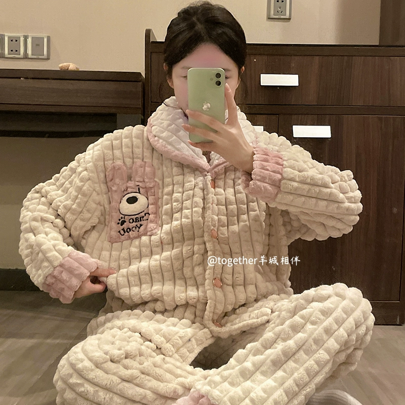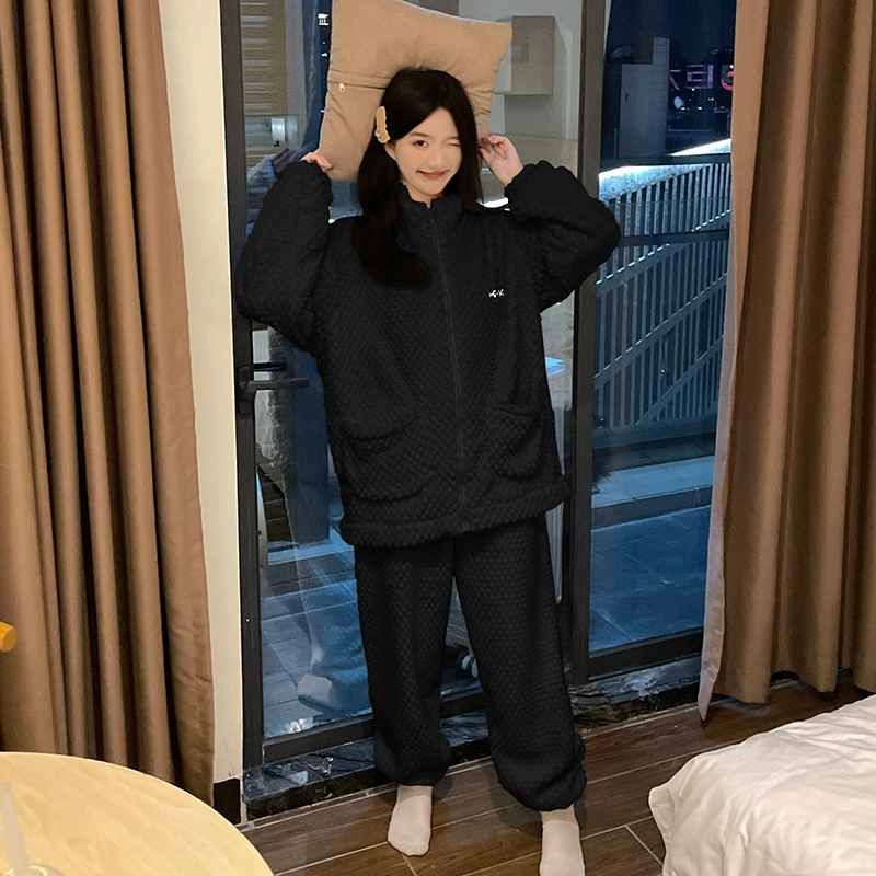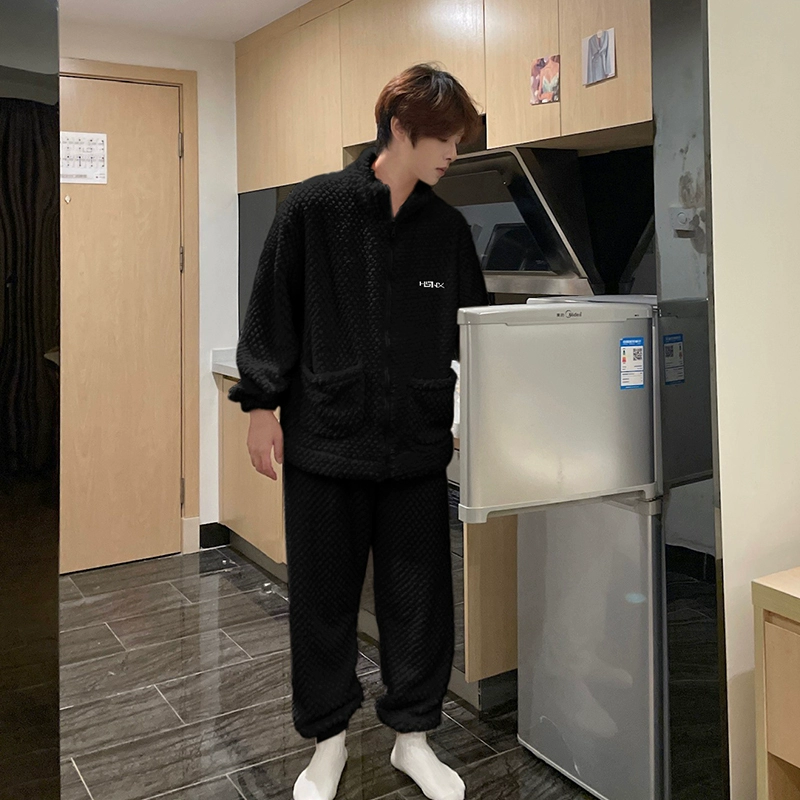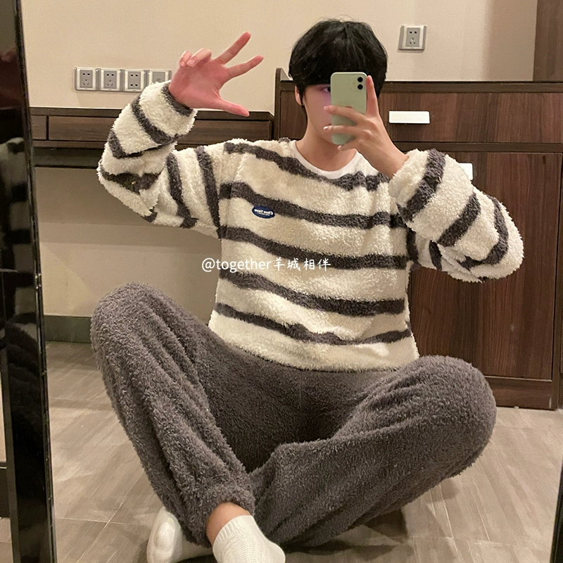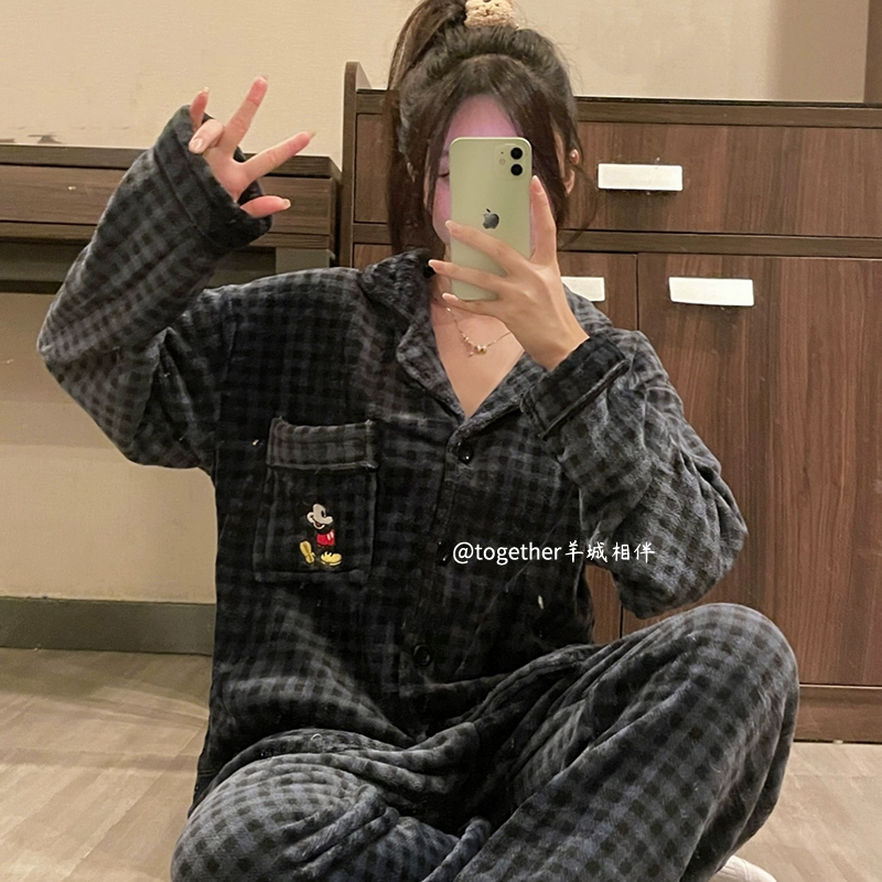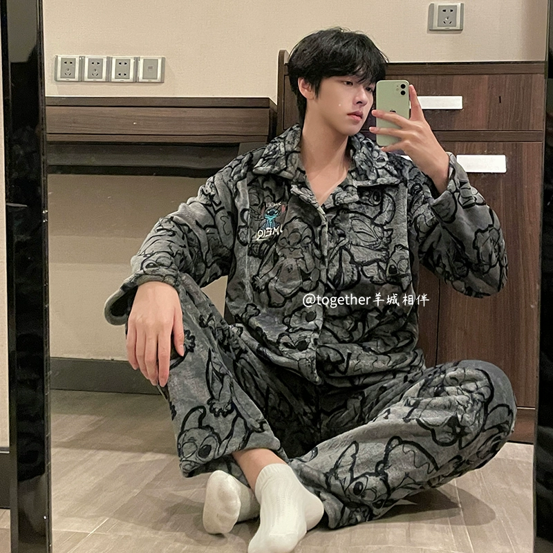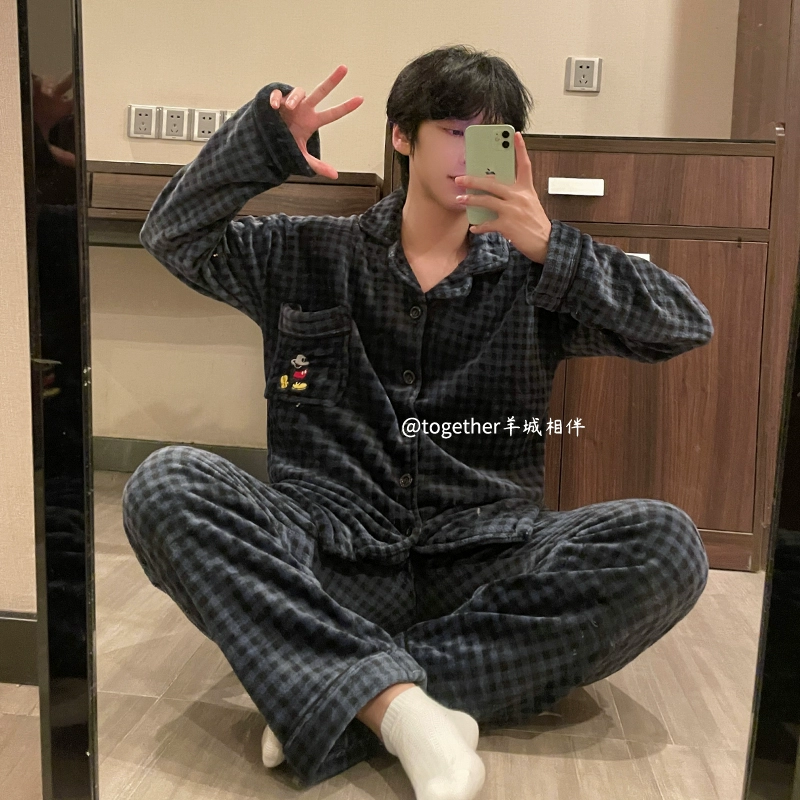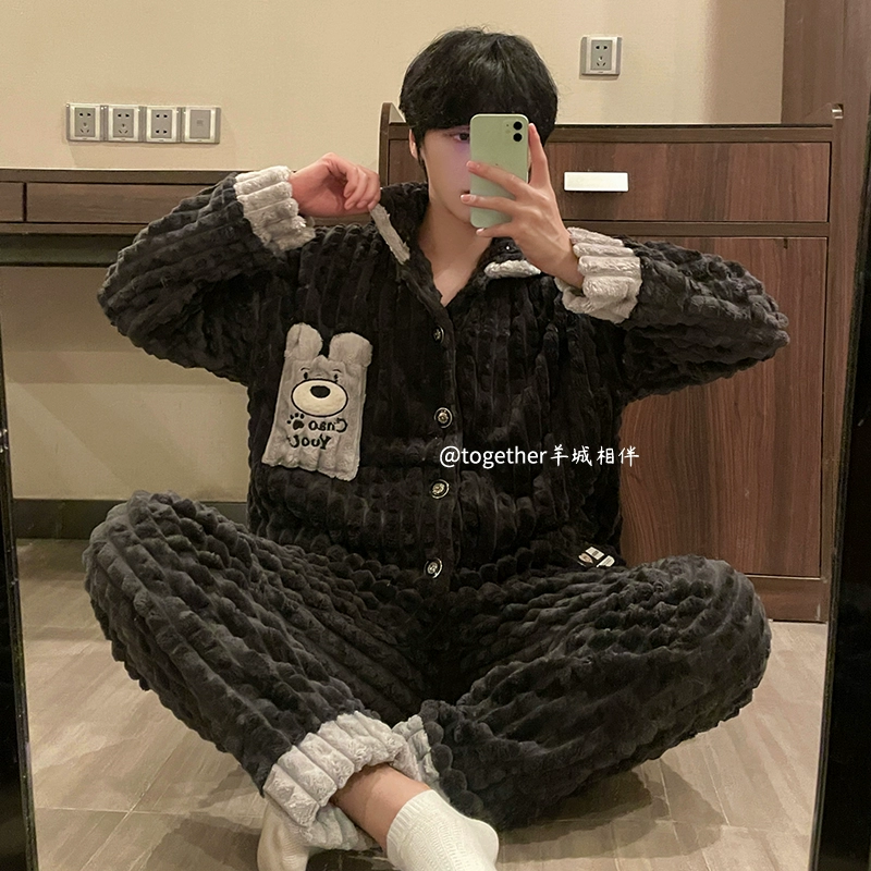 | nameOriginal | Autumn and winter new coral velvet pajamas for men and women plus velvet and thickened ins simple style flannel couple home wear set |