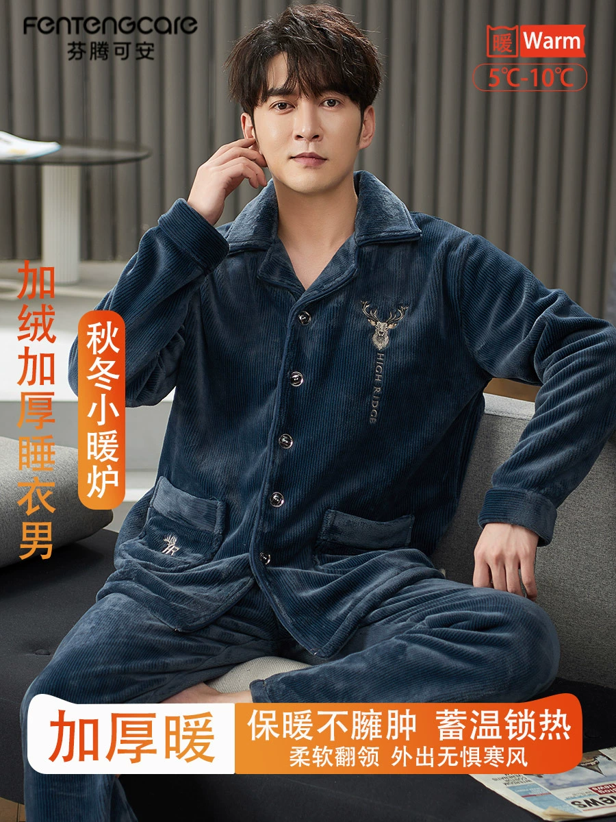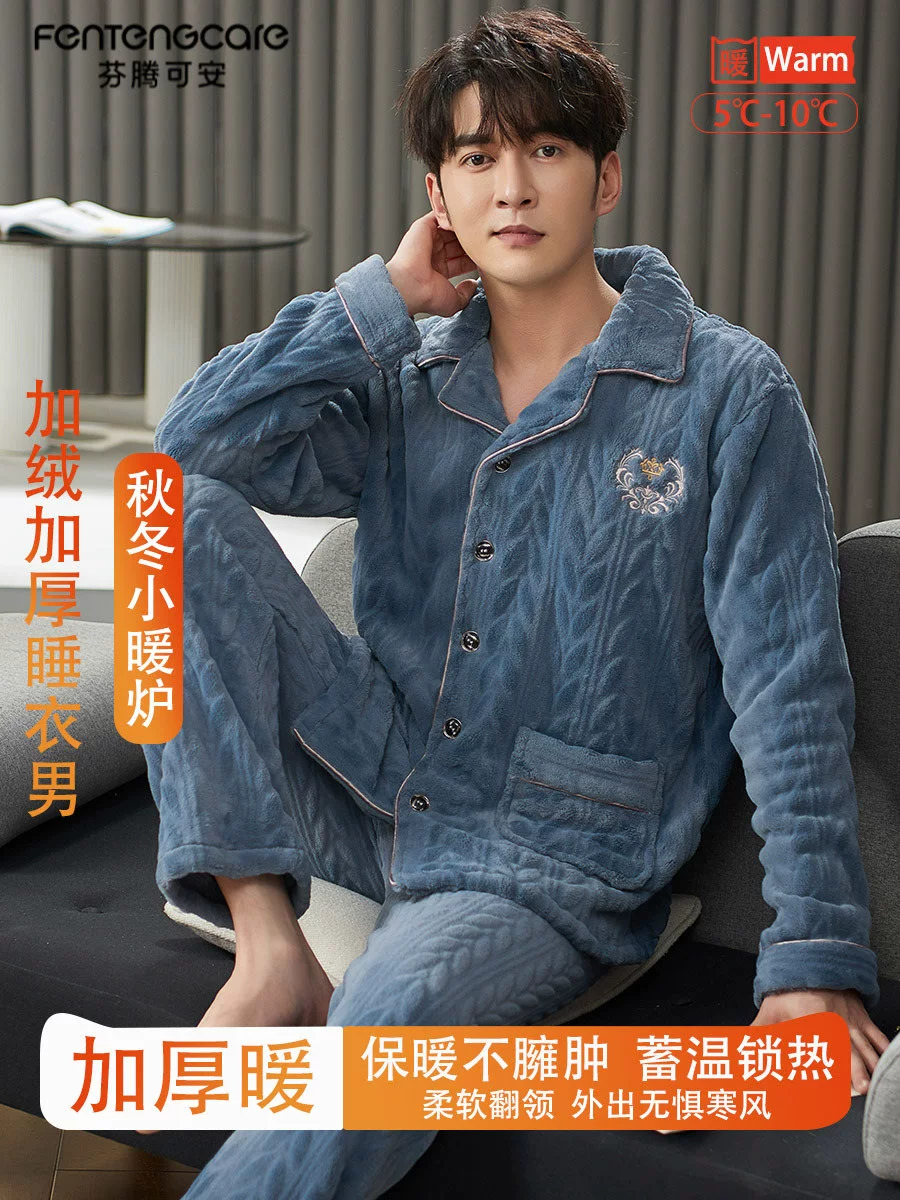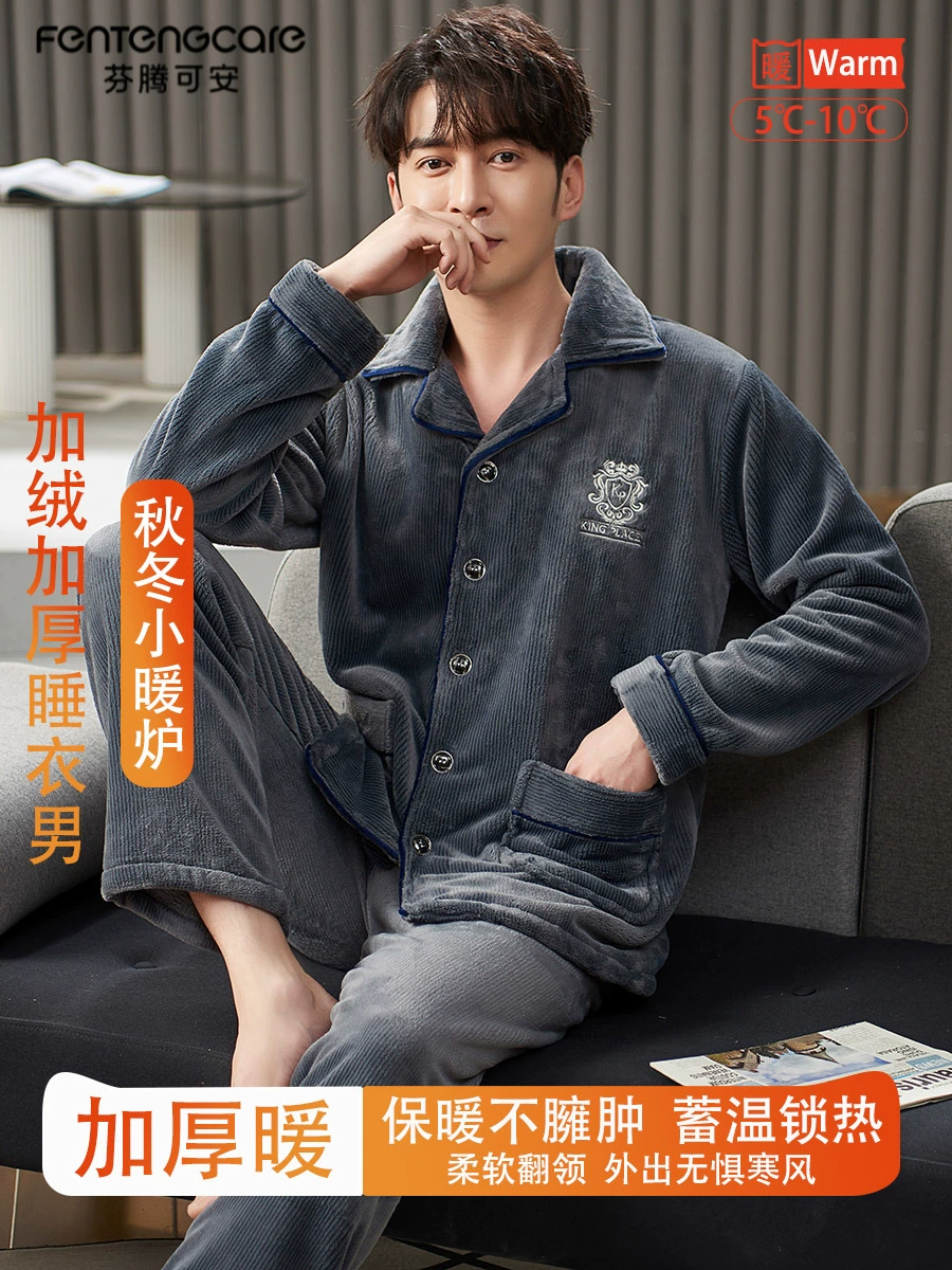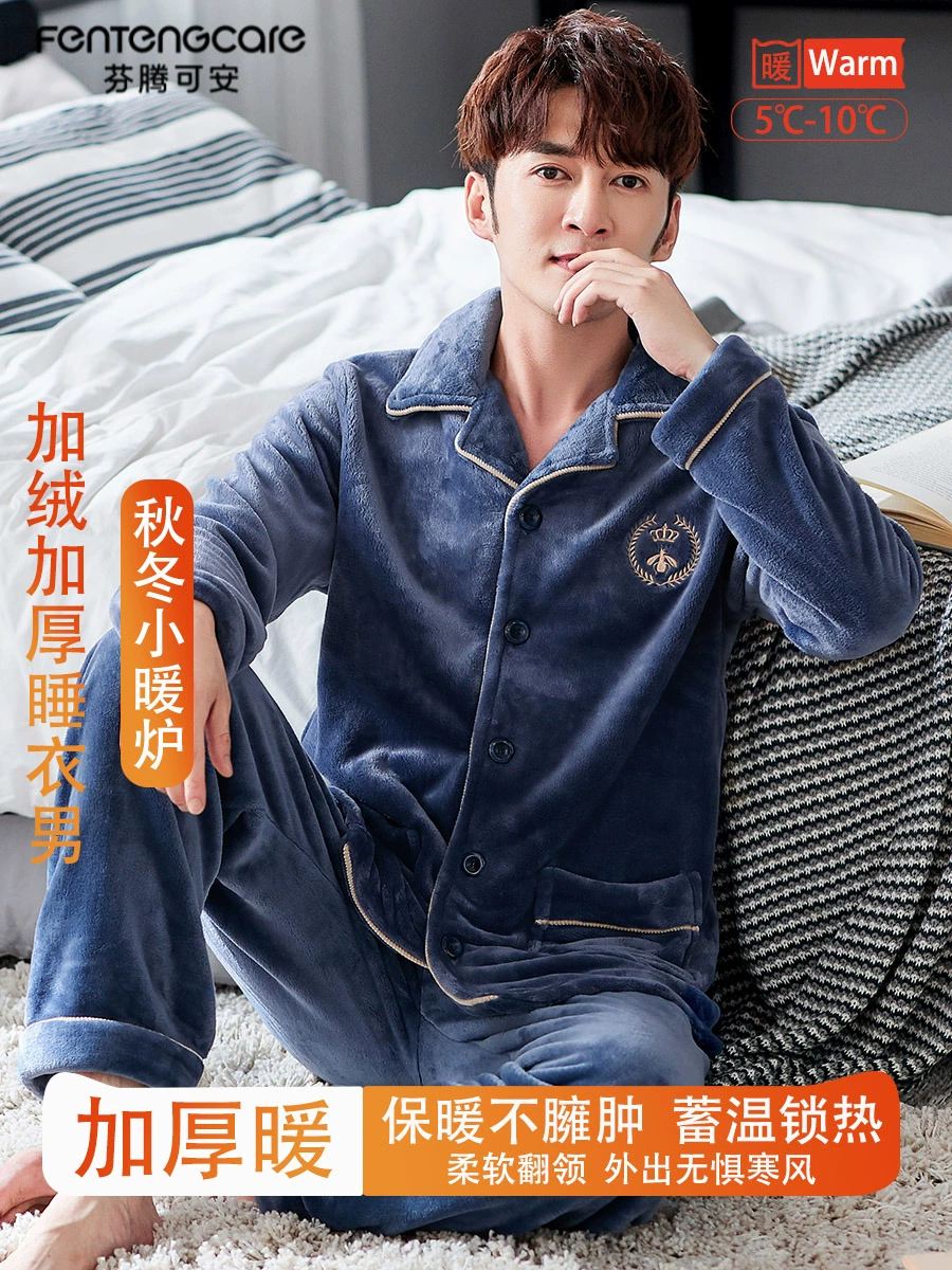| nameOriginal | Men's pajamas autumn and winter thickened plus velvet coral velvet spring and autumn long-sleeved flannel home clothes winter suit |