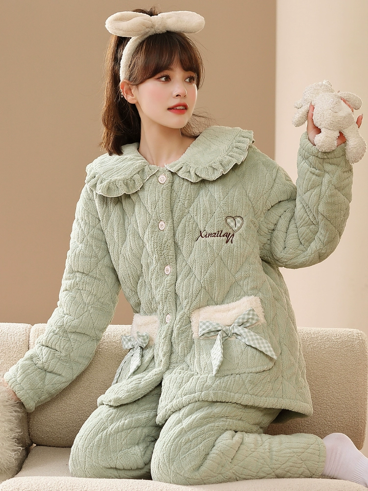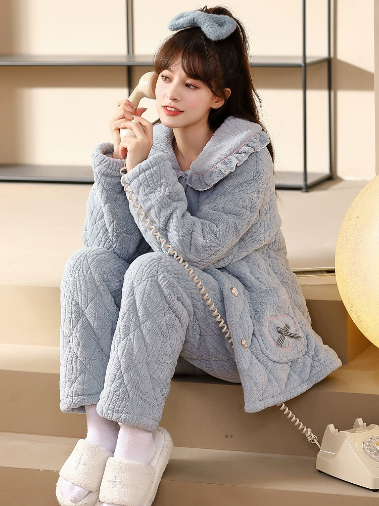 | nameOriginal | Coral velvet three-layer quilted pajamas for women 2024 winter long-sleeved thickened velvet warm flannel home clothes |