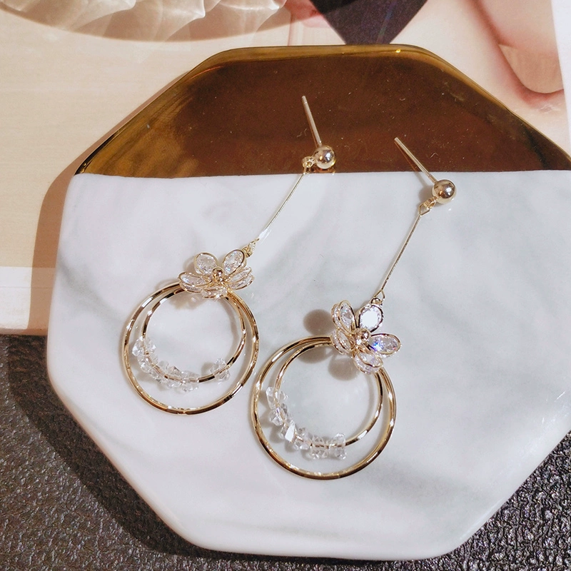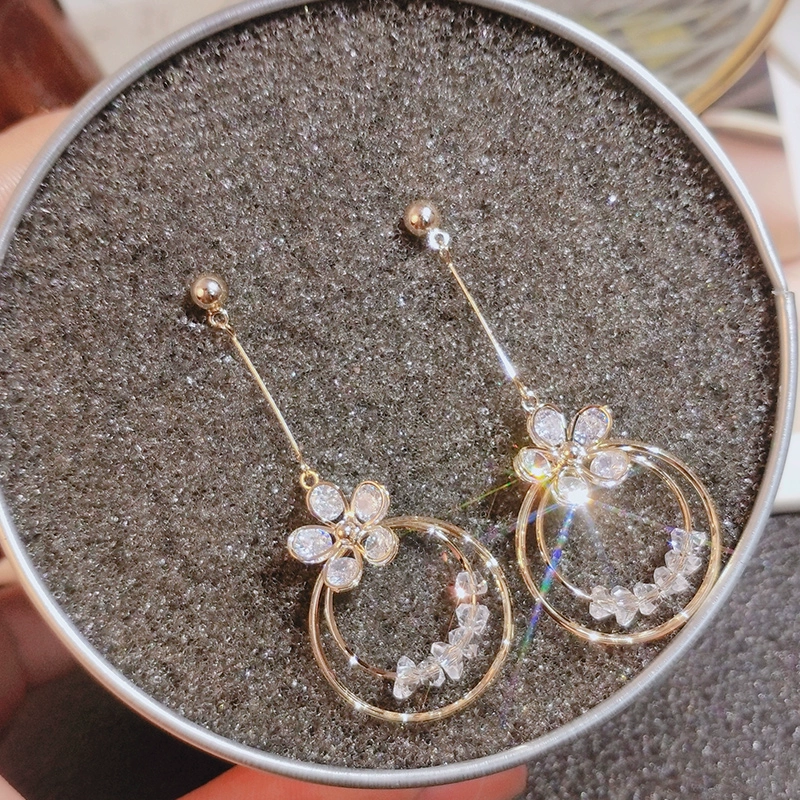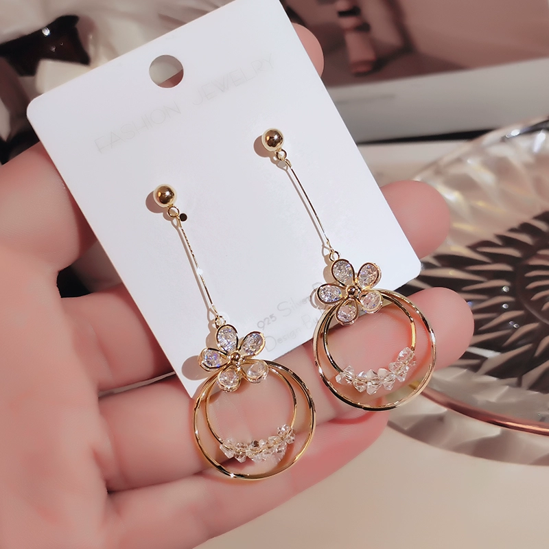 Ear clip without pierced women’s long style Korean crystal earrings 2022 new internet celebrity silver needle earrings flower earrings