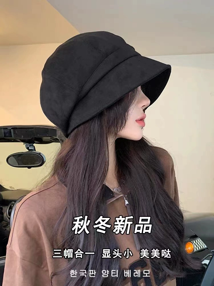 | nameOriginal | Korean style face-showing beret hat for women in autumn and winter suede elegant and intellectual long front and short pile hat fisherman hat |