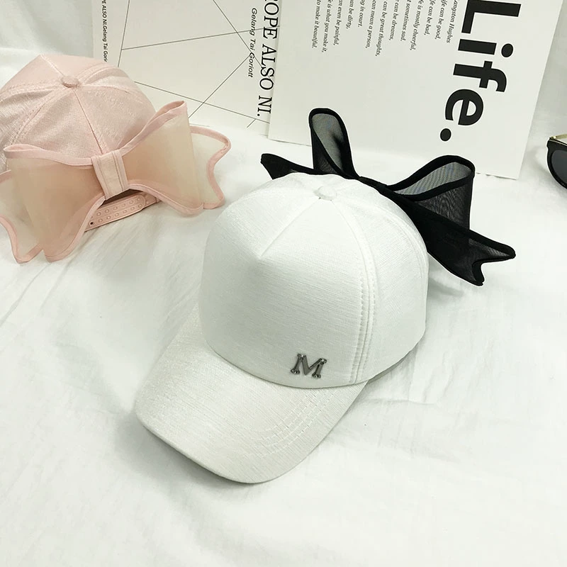 | nameOriginal | Hat Women's Summer Korean Version Versatile Peaked Hat Trendy Cute Student Bow M Label Baseball Cap Mesh Sun Hat |