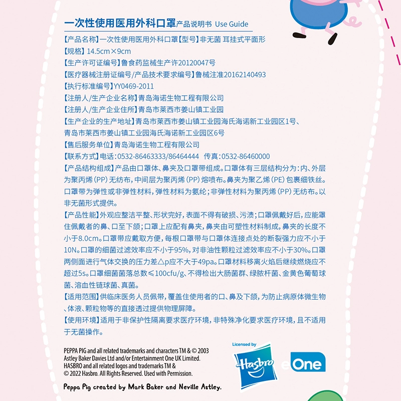 | nameOriginal | Haishi Hainuo x Peppa Pig joint medical surgical children's masks 50 pieces * 2 boxes cartoon summer thin style |