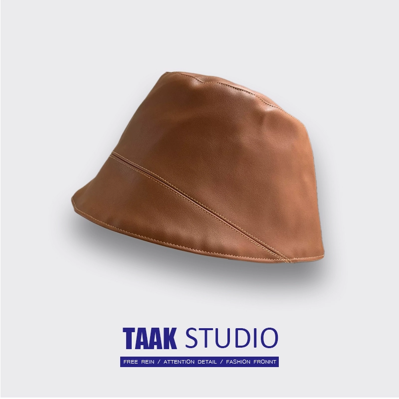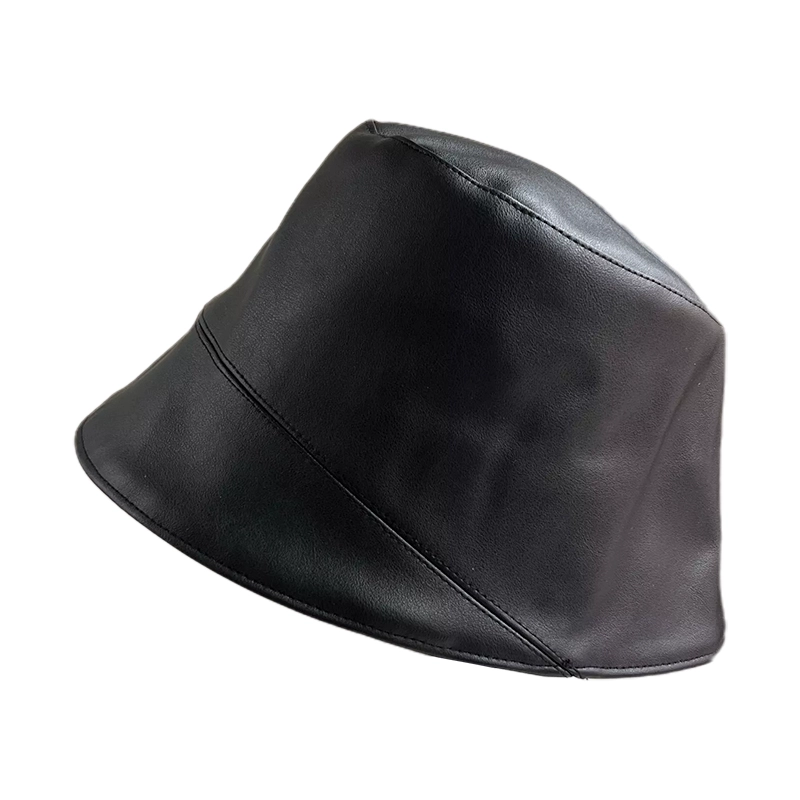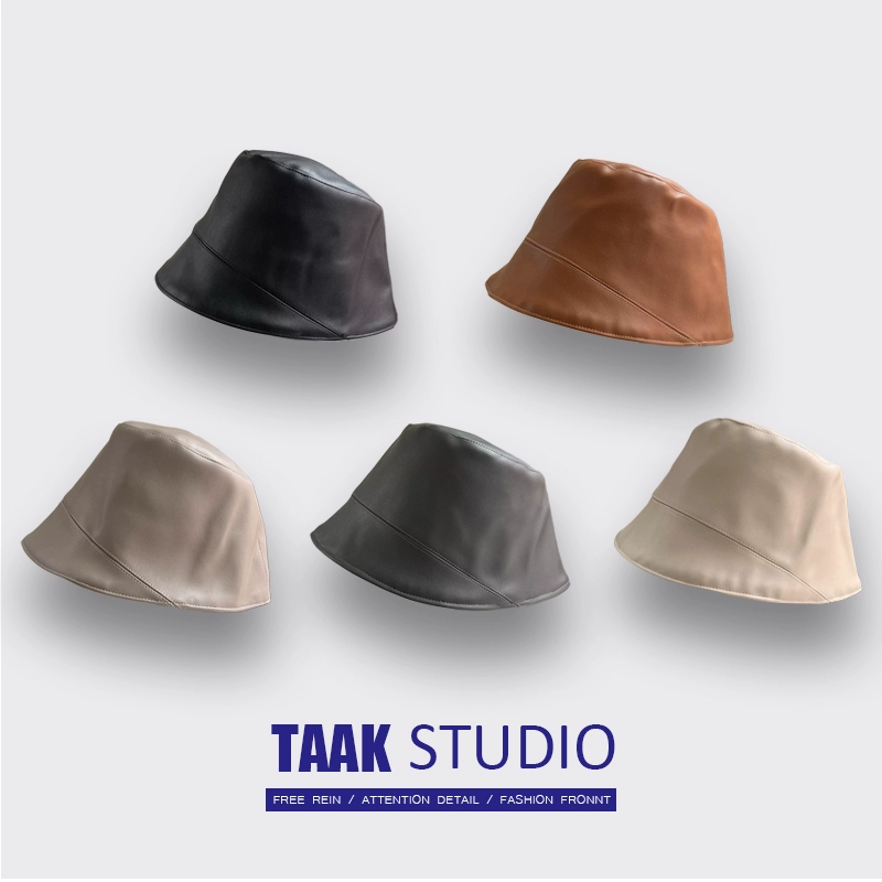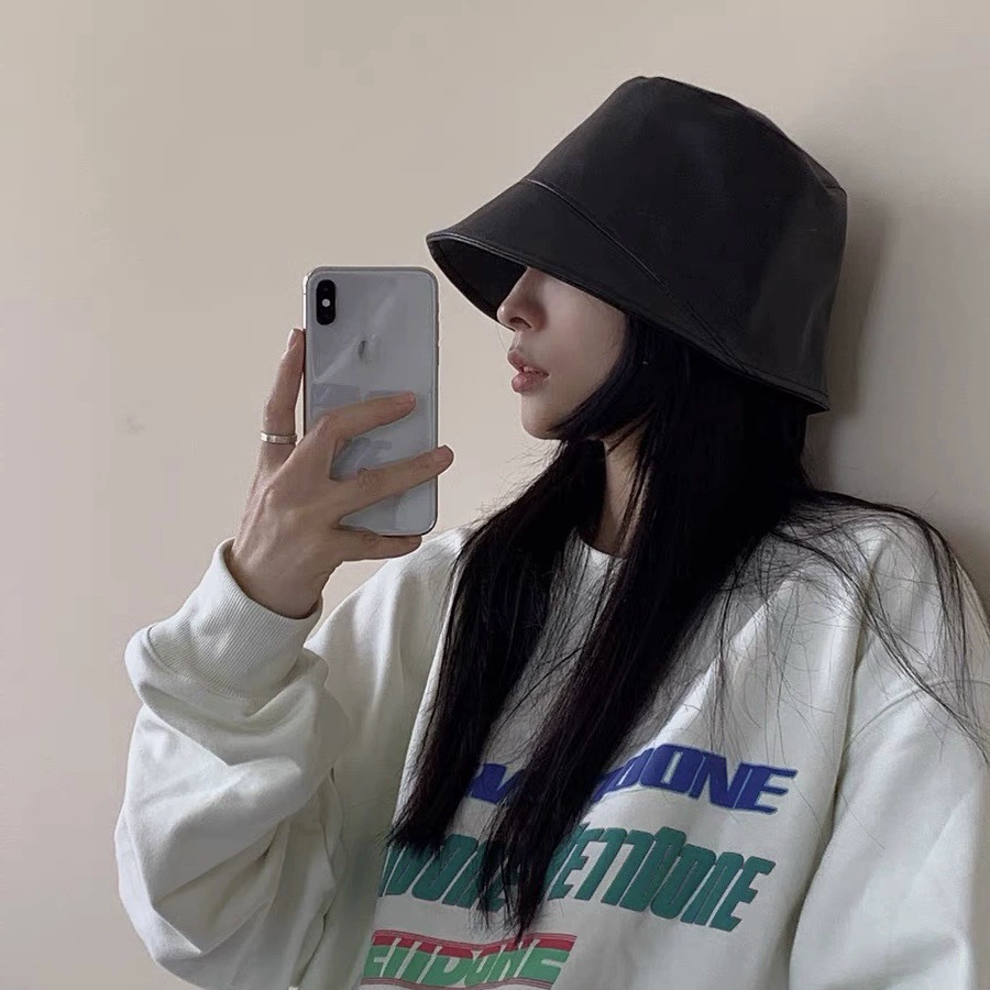 Autistic face-covering leather PU fisherman hat for women in autumn and winter Korean version of Internet celebrity all-match Japanese face-showing small bucket hat