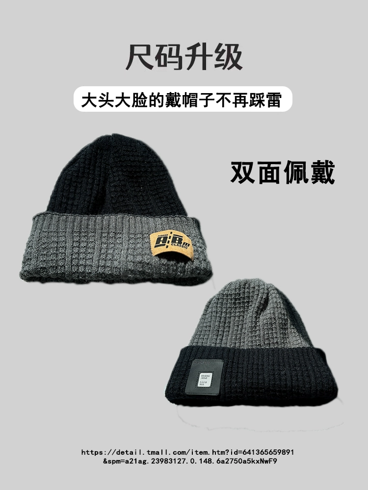 | nameOriginal | Hat men's winter trendy brand winter big head woolen hat boys knitted hat men's cold hat cotton hat warm men's style |