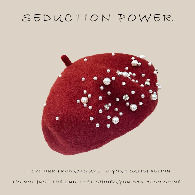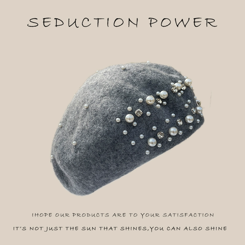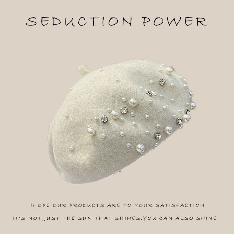 | nameOriginal | Autumn and winter woolen beret women's winter Korean version versatile pearl rhinestone painter's hat retro British pumpkin bud hat |