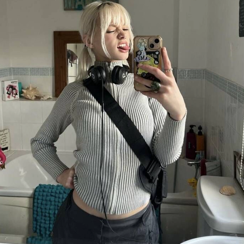 | nameOriginal | VintageTang American Gray Hot Girl Slim Stand Collar Zipper Sweater Knitted Cardigan Jacket Women Xiao3D |