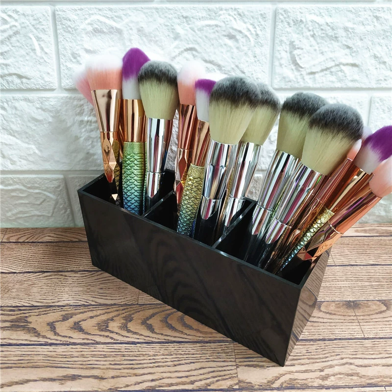 Black storage box makeup brush eyebrow pencil holder Acrylic three-compartment makeup brush storage box black pen storage