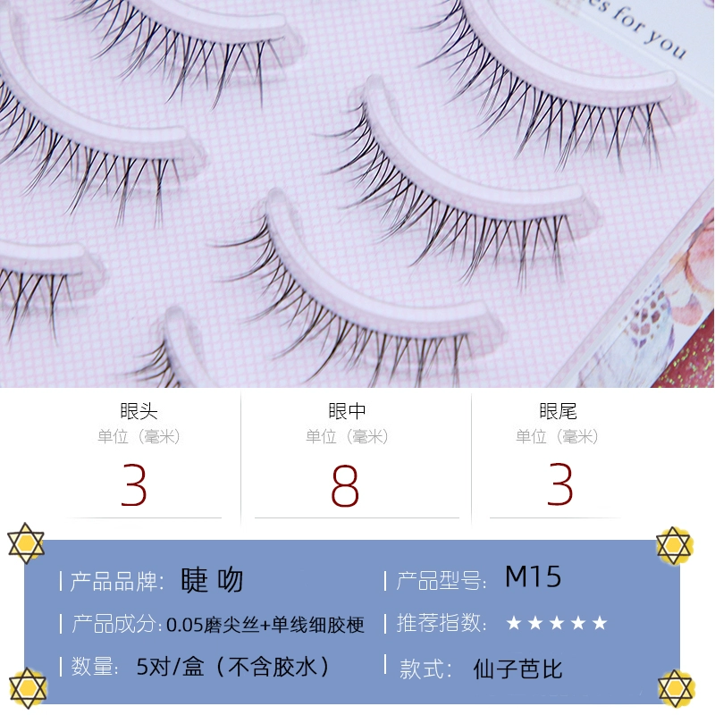 Eyelash Kiss M15 Natural Short Air Barbie Fairy False Eyelashes for Women Natural Nude Makeup Novice Transparent Thin Soft Stems