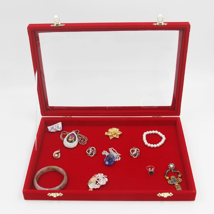 | nameOriginal | Velvet jewelry box with glass lid, display and storage of rings, necklaces and pendants, jewelry box |