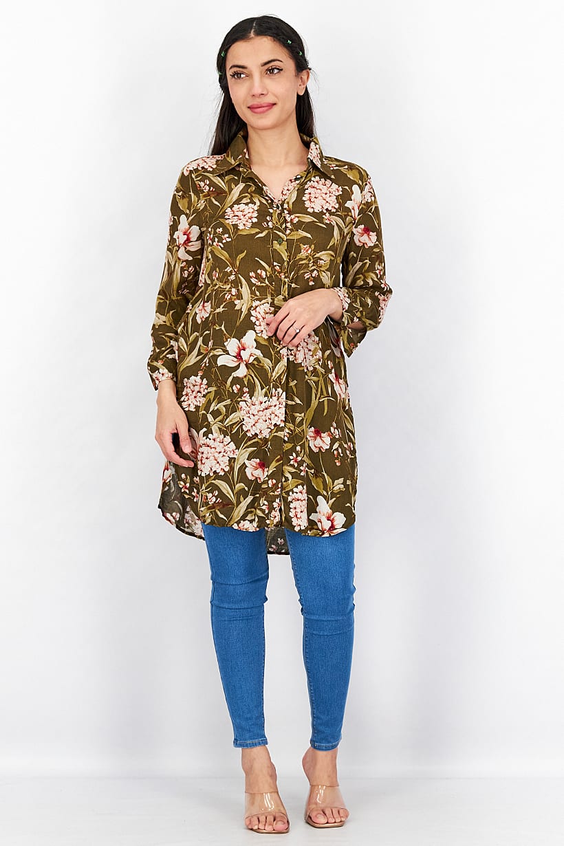 | sub_Categories | Women Clothing, Tops & Tees, women spread neckline long sleeve allover printed blouse olive combo |