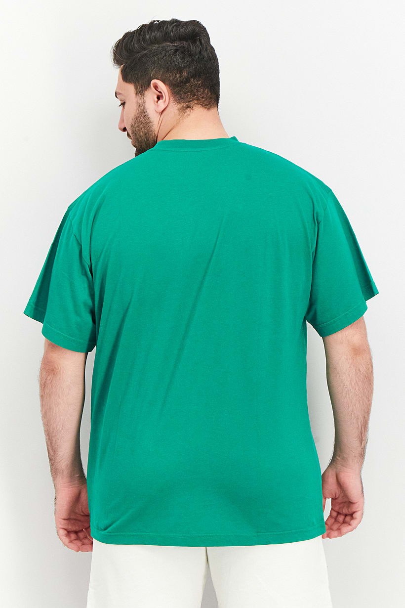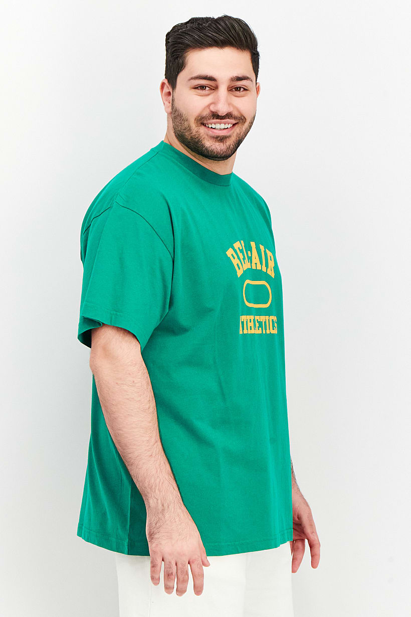 This sportswear t-shirt is made of 100% cotton and is machine washable. It has a sportswear fit and is designed for outdoor activities. The t-shirt has a light thickness and features a brand logo pattern and print. It is a pullover style with a green color family. Please note that the product color may slightly vary due to photographic lighting sources or monitor settings. This t-shirt is perfect for sports occasions. The size shown is international.
