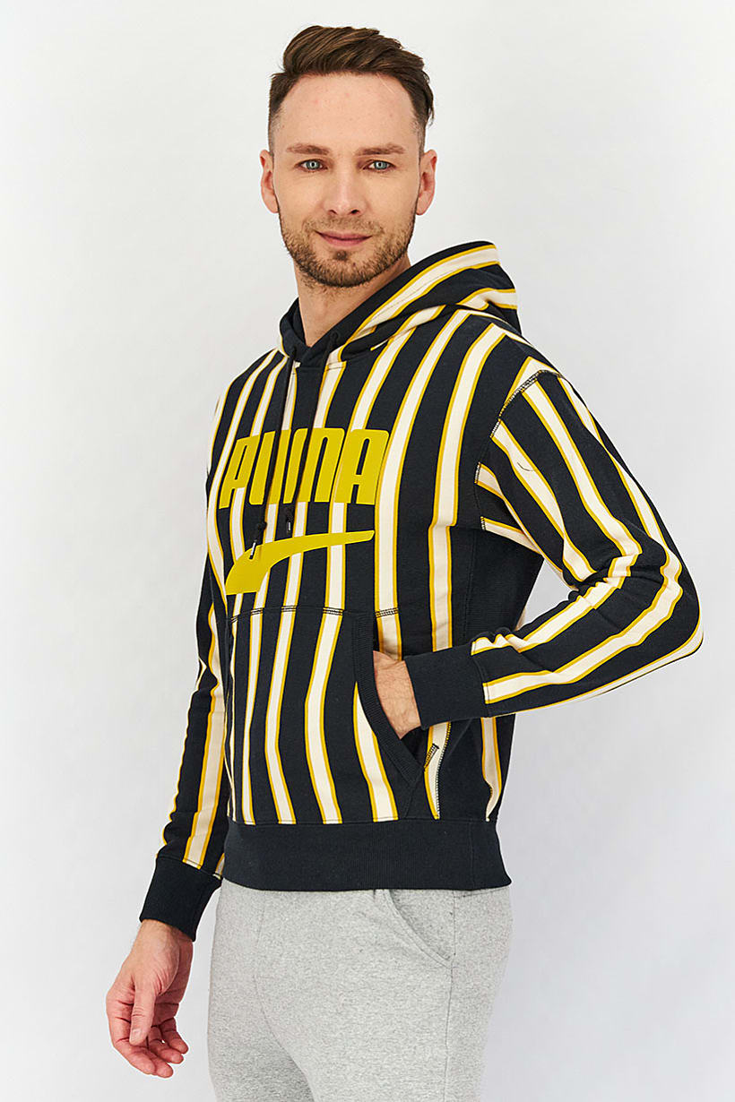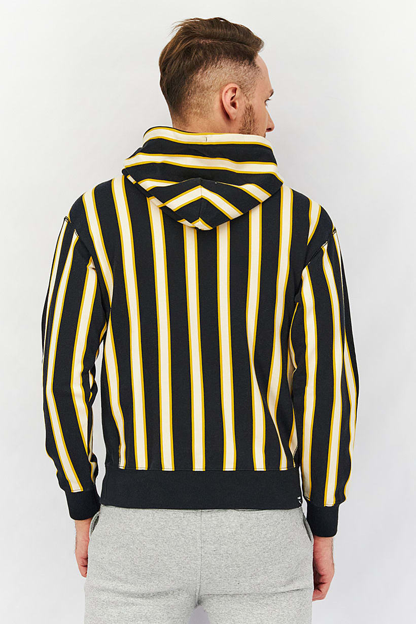 | nameOriginal | Men Hooded Drawstring Long Sleeve Stripe Sweatshirt, Black and Yellow |