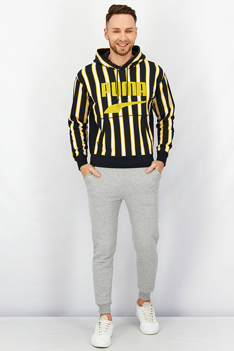 | sub_Categories | Men Clothing, Sportswear, men hooded drawstring long sleeve stripe sweatshirt black and yellow |