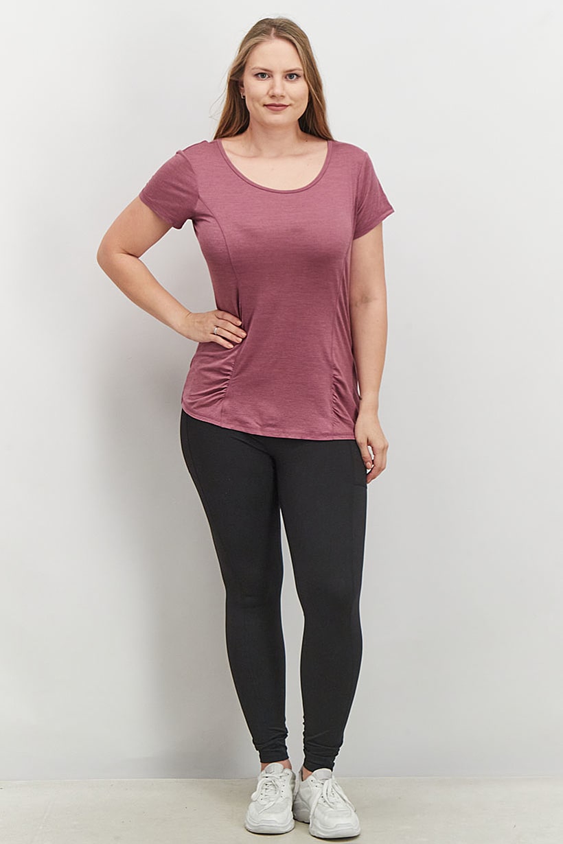 | descriptionOriginal | Care : Machine washable, Fit : Regular fit, Size shown : International, Sleeve Length : Short Sleeve, Thickness : Light, Type of Sport : Training, Types of Hem : Straight hem, Types of Neckline & Collar : Scoop neckline, Types of Sleeve : Cap sleeve, Disclaimer : Product color may slightly vary due to photographic lighting sources or your monitor settings., Fabrics : 96% Polyester, 4% Spandex, Occasion : Sport, Pattern & Print : Heather, Sportswear Type : Tops, Types of Closures : Pullover, Color Family : Purple, |