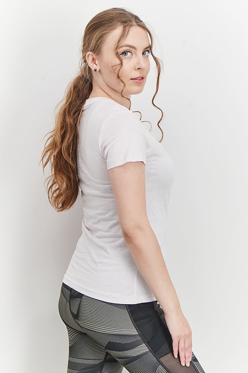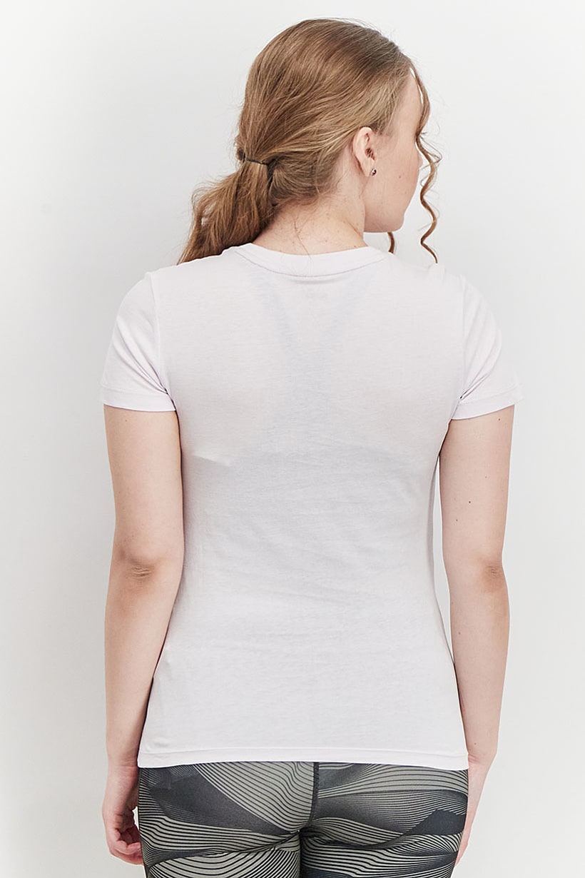 This t-shirt is perfect for training and sports occasions. It has a regular fit and short sleeves with a crew neckline. The fabric is 100% cotton and is light in thickness. The closure is a pullover style and the color family is lavender. Please note that the product color may vary slightly due to photographic lighting sources or monitor settings. The pattern and print feature the brand logo. The t-shirt is machine washable and is available in Asian sizing.