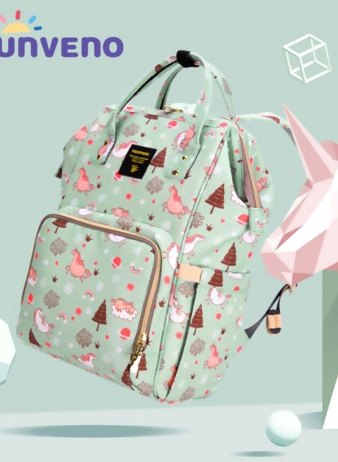 Overall, the Unicorn Printed Waterproof Multifunctional Large Capacity Diaper Bag in Green Dream Sky is the perfect accessory for any parent who wants to stay organized and stylish.