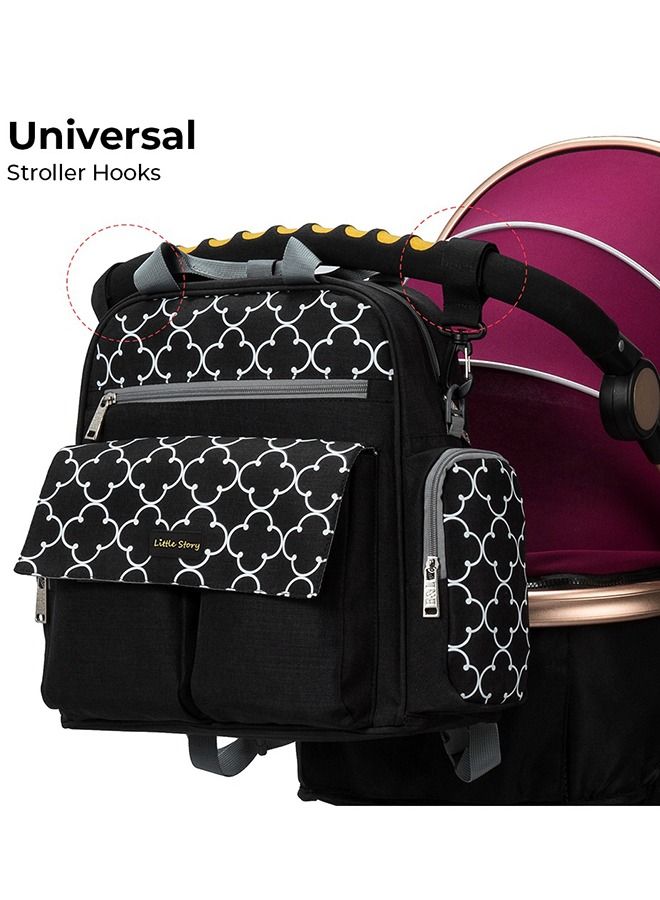 The Convertible Diaper Bag also includes stroller hooks, allowing you to easily attach the bag to your stroller for hands-free convenience. The bag can also be worn as a backpack or shoulder bag, giving you the flexibility to choose the most comfortable carrying option for you.
