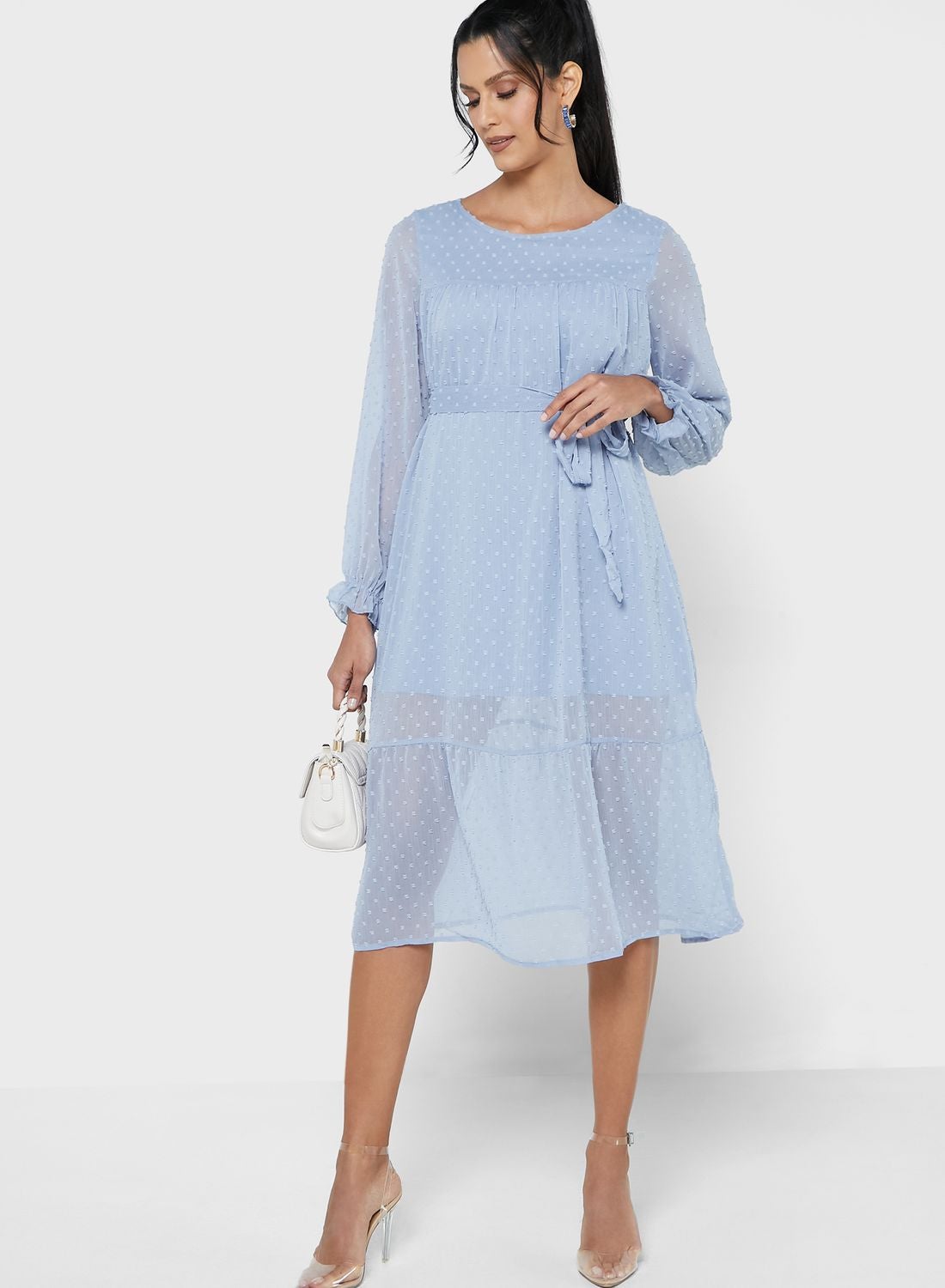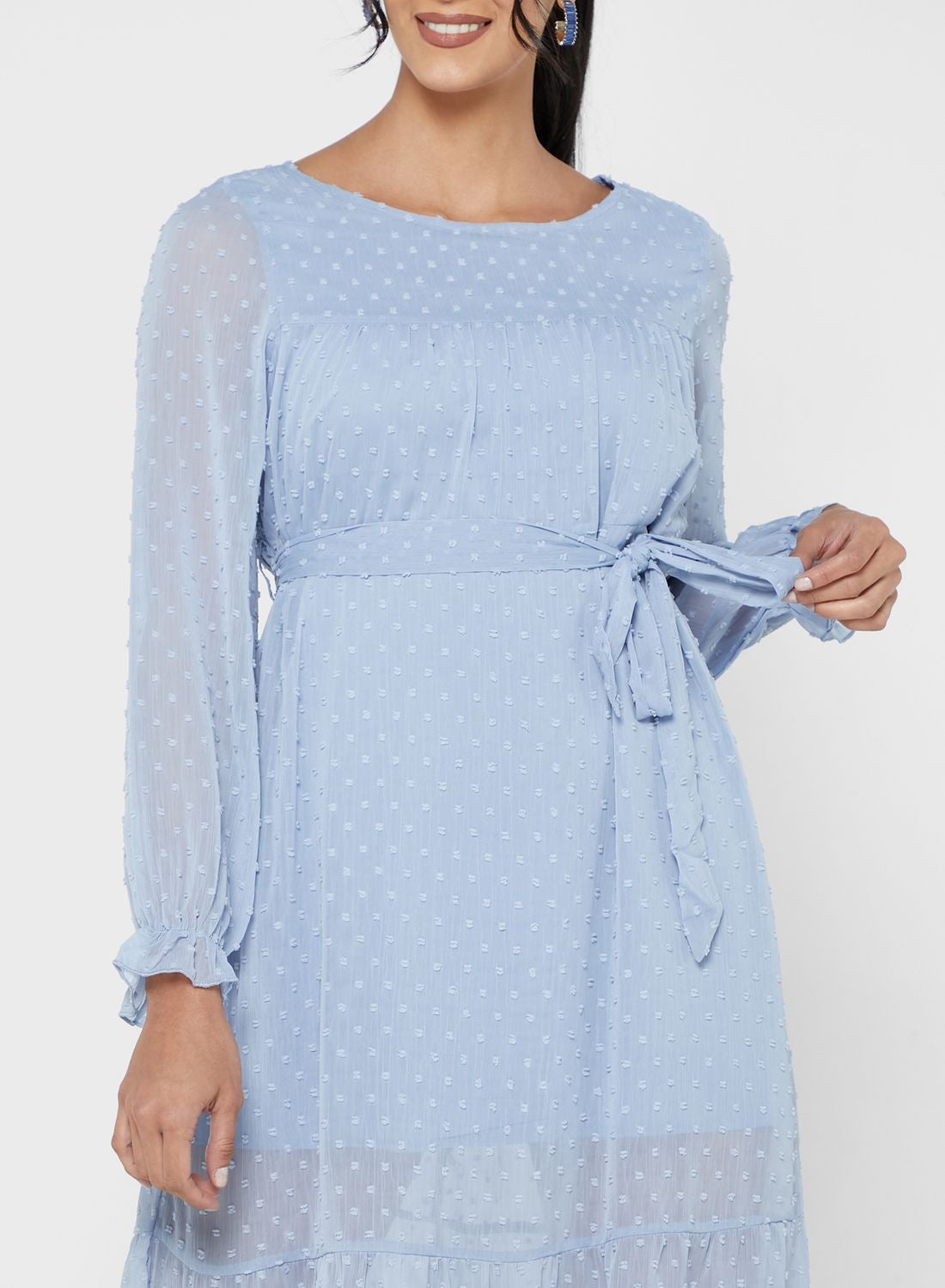 Ella’s exclusive collection offers a breezy and feminine look that is perfect for everyday wear. The product is made of smooth and lightweight polyester fabric, featuring a round neck and long sleeves. It also comes with an adjustable self-tie belt to accentuate the waist and a flared hem style.