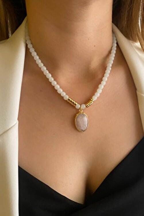 | nameOriginal | Suerte Accessories Moon Stone And Pink Quartz (Love Stone) Natural Stone Gold Accessory Handmade Custom Design Necklace |