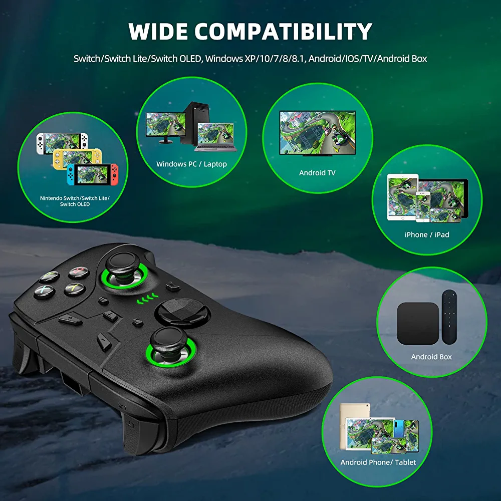 | nameOriginal | Switch Pro Controller for Nintendo Switch/Switch Lite/OLED, Wireless Switch Controller with Programmable Buttons, Dual Vibration, Turbo, Green LED Light and Wake up Function, Headphone Jack |