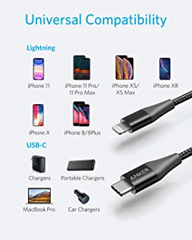 The PowerLine+ II USB-C to Lightning Cable is compatible with a range of iOS devices, including iPhone 8, 8 Plus, X, XS, XR, XS Max, iPad Pro (10.5-inch), iPad Pro(12.9-inch) 1st generation, iPad Pro (12.9-inch) 2nd generation.