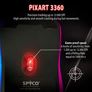 | nameOriginal | SPYCO Action MO-102, Ergonomic Gaming Mouse with High Performance, PMW 3360 Chipset, 12.000 DPI, Polling Rate 1000Hz, RGB light, Weight 96g, 6 Programmable Buttons, Paracord Thread |