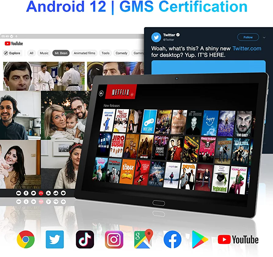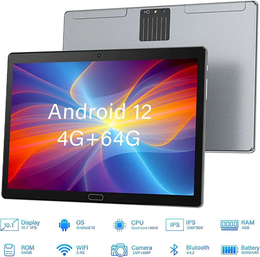 | nameOriginal | Android 12 Tablet 10 inch with Keyboard Case Bundle,4GB+64GB ROM/512GB Gaming Tablets,2MP+8MP Dual Cameras,Quad Core Processor,WiFi,Bluetooth,1280×800 IPS HD Display,Google Certified Tablet PC |