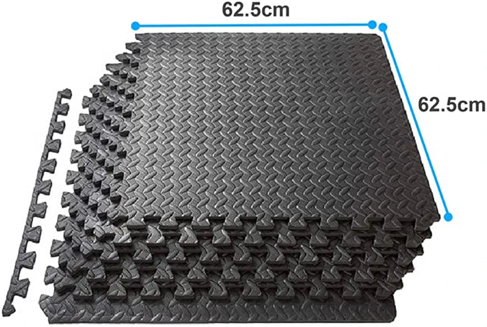 | nameOriginal | YALLA HomeGym Puzzle Exercise Mat with EVA Foam Interlocking Floor Tiles , (62.5×62.5cm, 10mm), Protective Flooring Mats Interlocking for Gym Equipment, Set of 4 pcs ( 1.5 Squared Meter) |