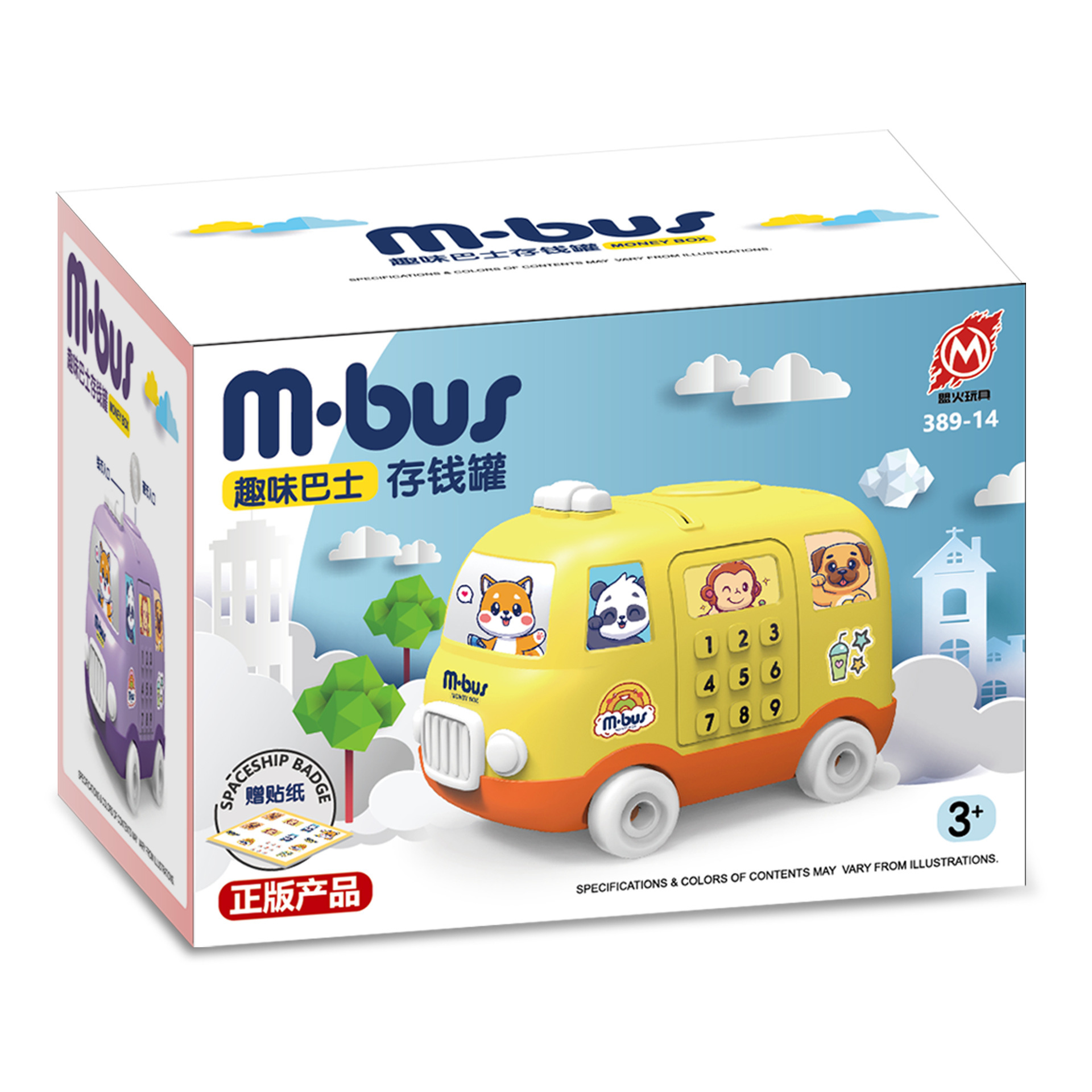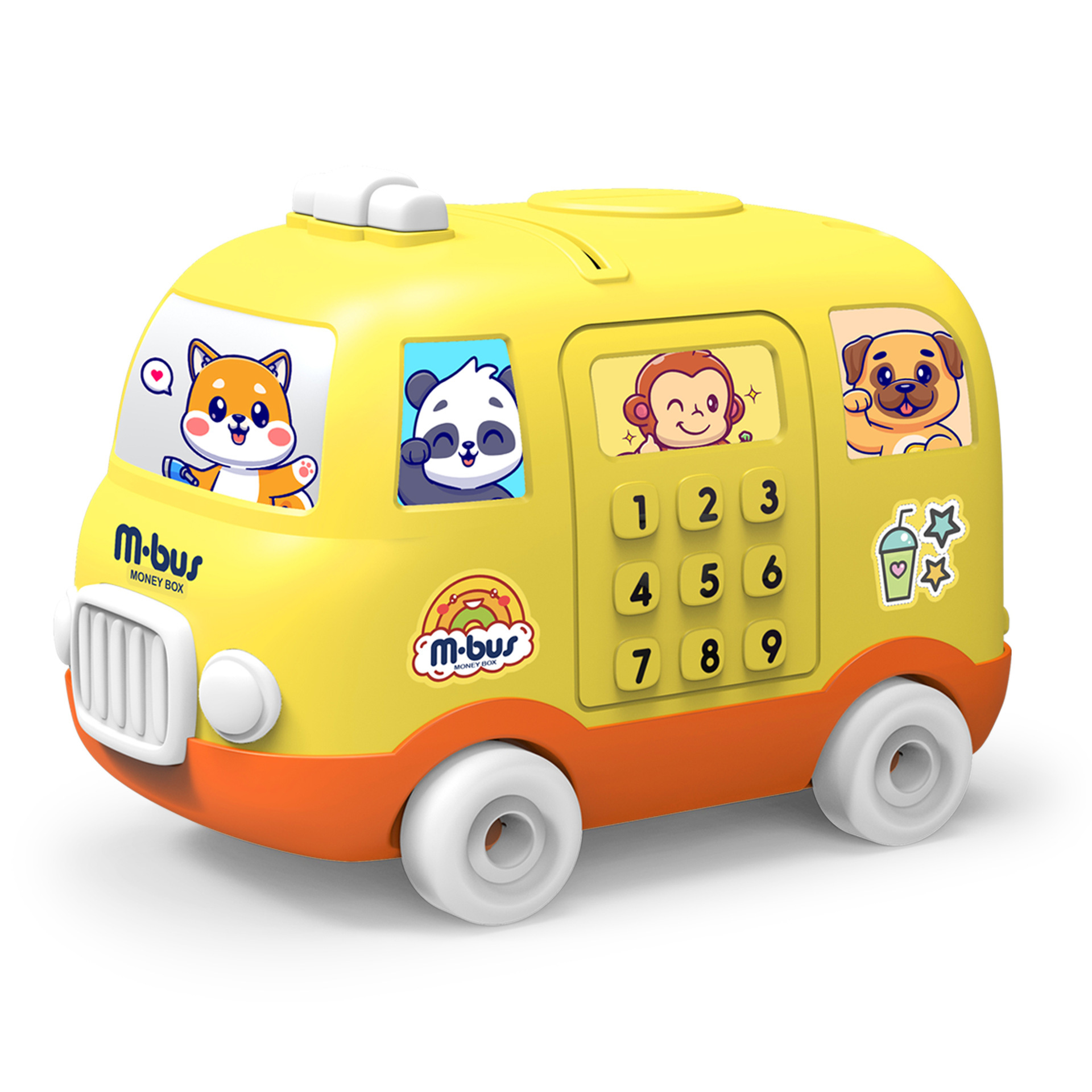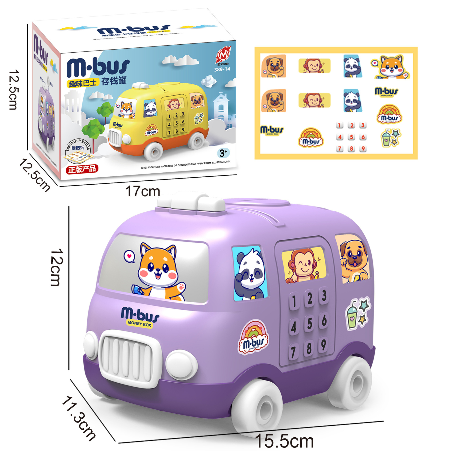 Children's large children's piggy bank toys can only enter cartoon bus piggy bank with lock boys and girls toys