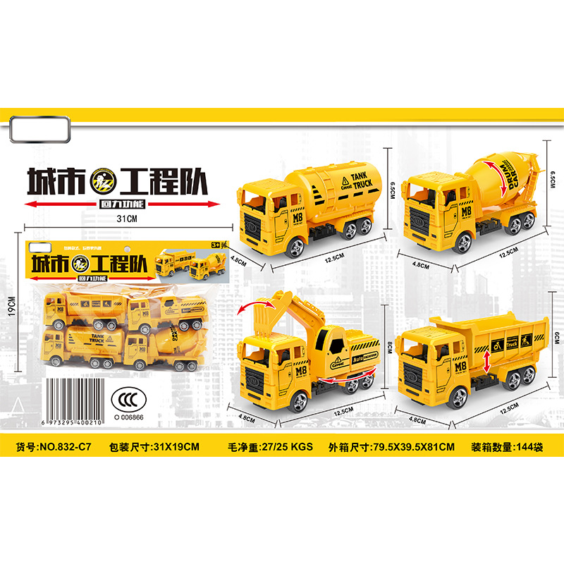 | nameOriginal | Children's card head loading engineering vehicle toy set stall night market supply sanitation fire truck set military transport vehicle |