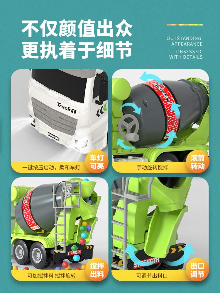 Large children’s engineering cement mixer excavator baby alloy toy car boy 3 years old 2 concrete