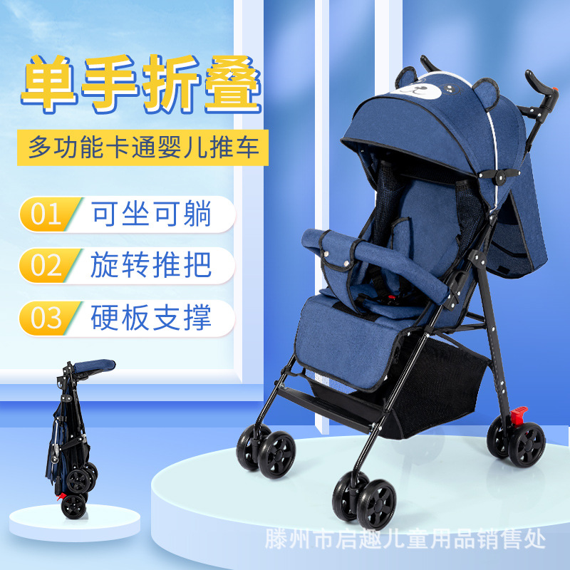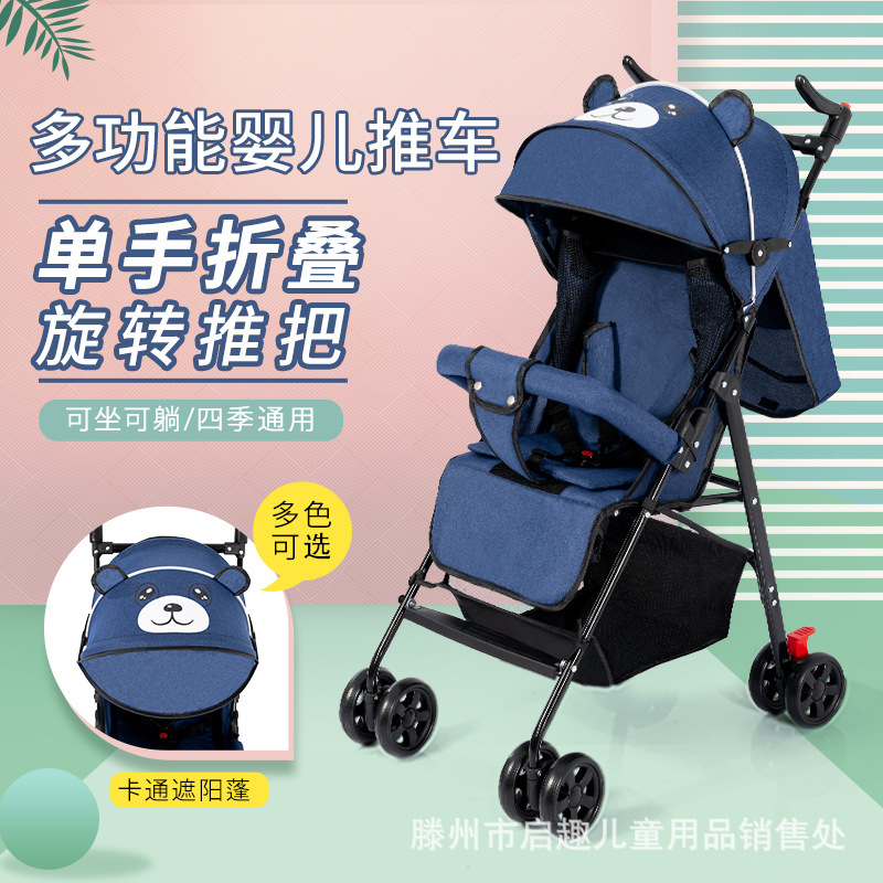 Cartoon baby stroller can sit and lie baby umbrella car lightweight foldable Four Seasons brake walking baby artifact wholesale