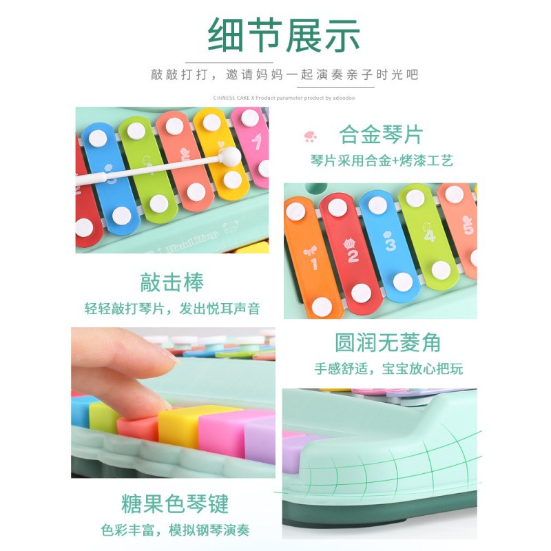 | nameOriginal | Babies' eight-tone hand-knocking piano babies' two-in-one xylophone infant children's piano key music toy educational musical instrument |