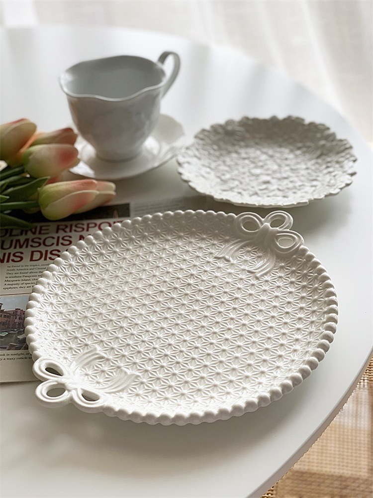 | nameOriginal | 3OBR wholesale [wholesale] export order bow bead embossed ceramic breakfast plate retro Western plate |