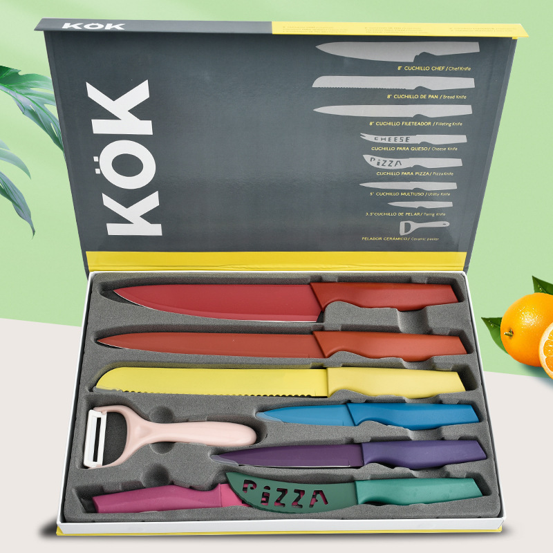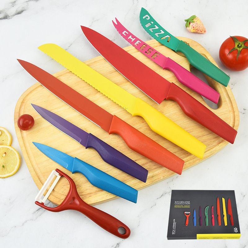| nameOriginal | Cross-border knife color paint knife eight-piece set stainless steel paint knife suit kitchen knife color box companion gift |
