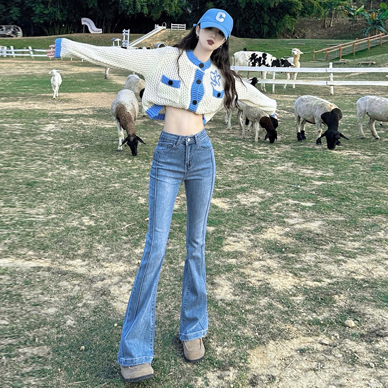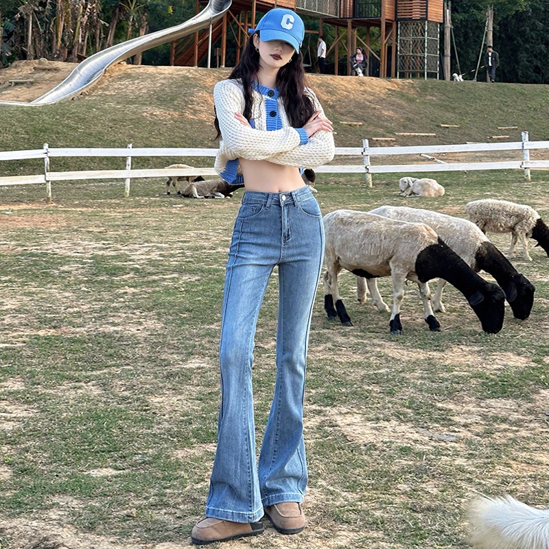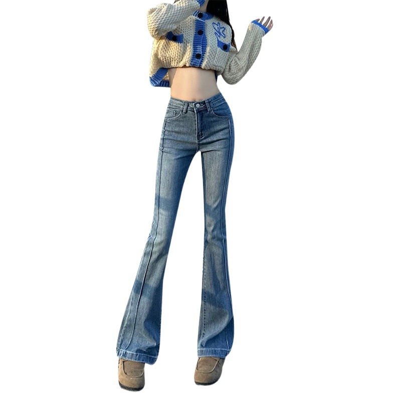 | nameOriginal | Real shot 2024 spring retro Denim trousers women's Korean version of high waist elastic design sense thin wide leg flared pants |