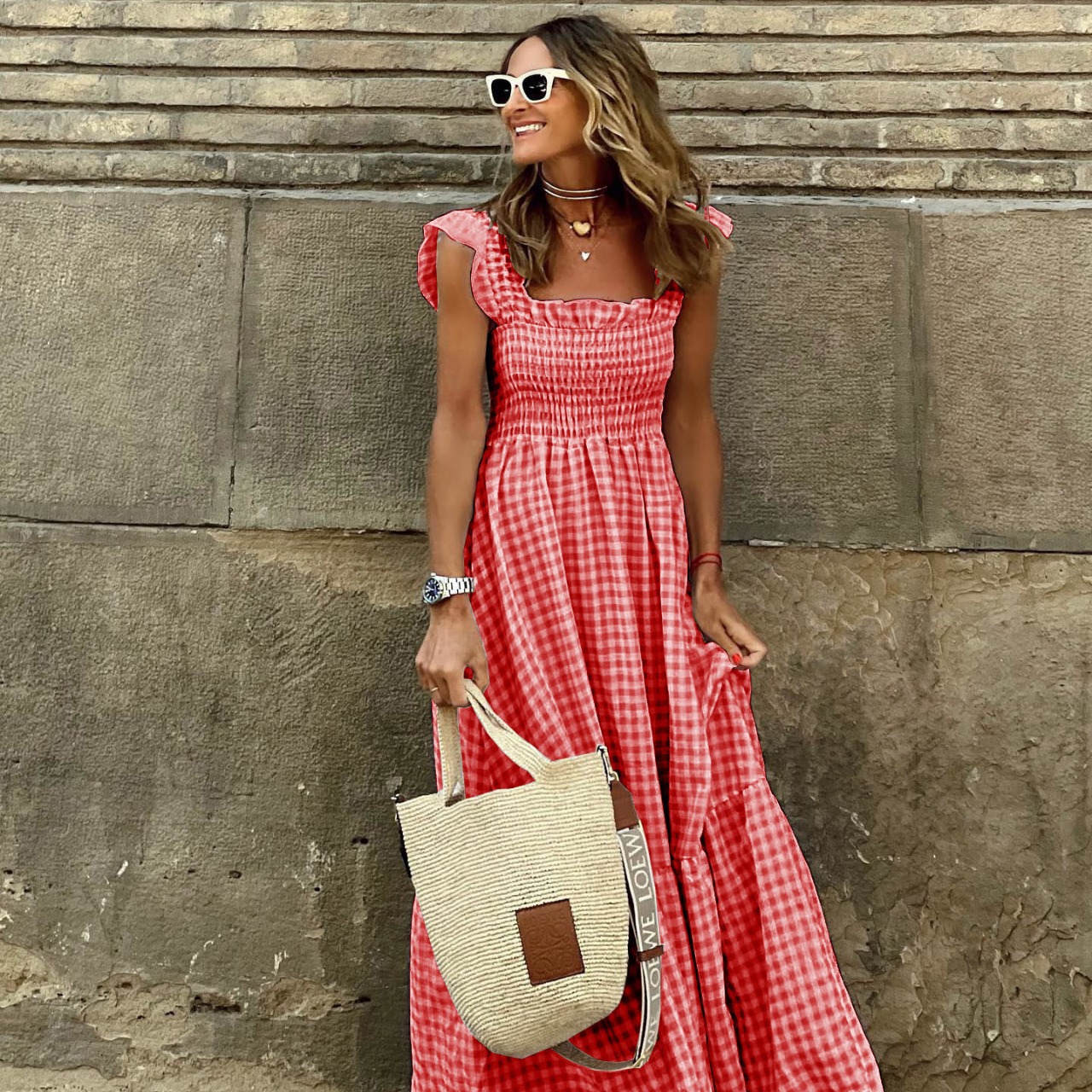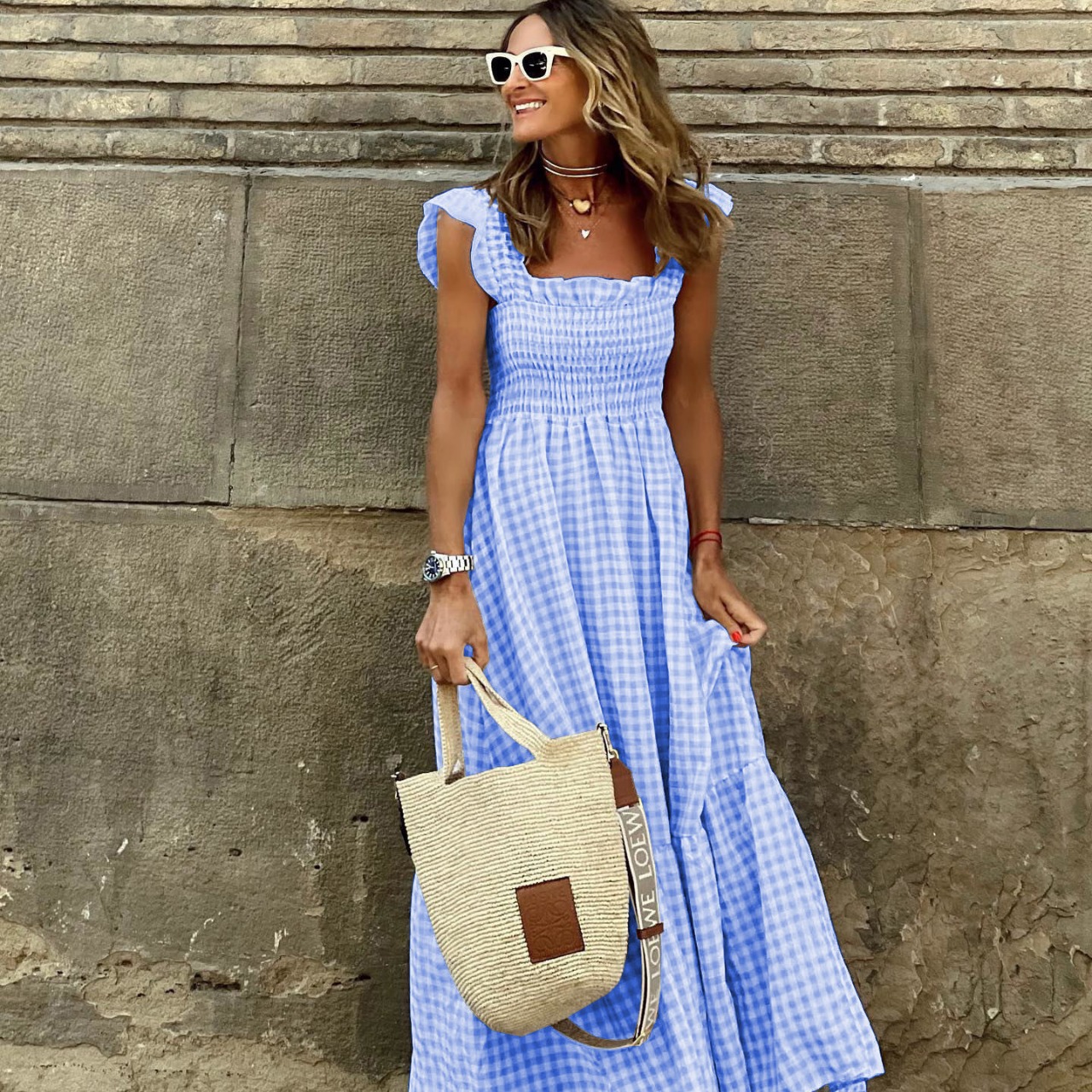 2024 European and American Independent Station Amazon Summer Elegant Women’s Wear Collage Plaid Suspender Strap dress