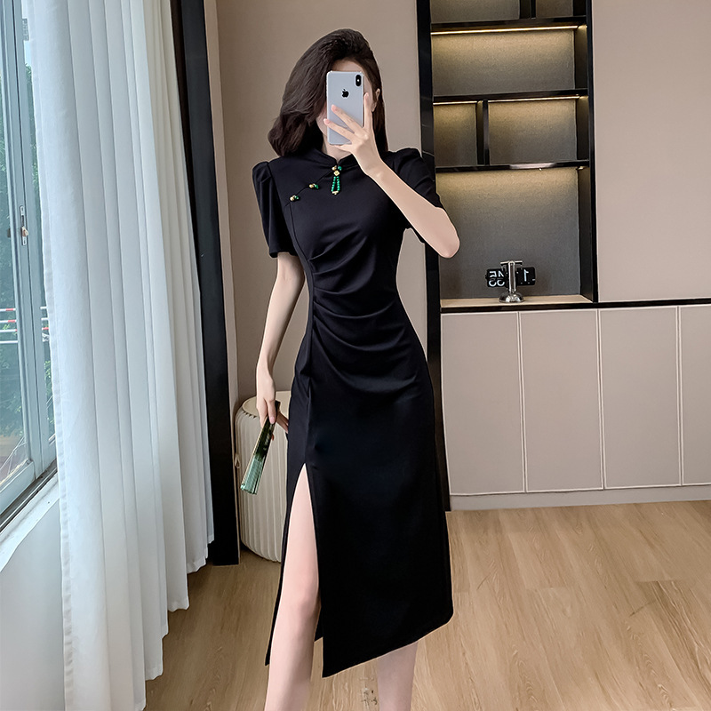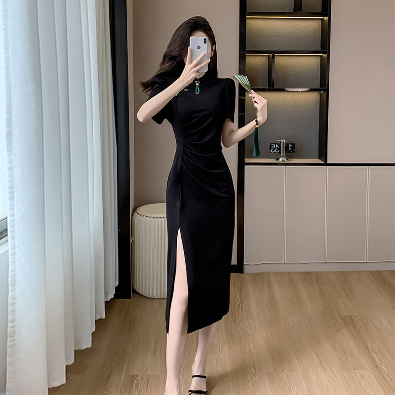 | nameOriginal | 2024 New New Chinese Style Cheongsam with National Style Slim Fit and Slim Black Split Long Hip dress Women |
