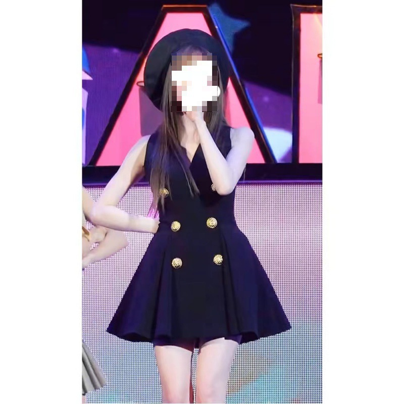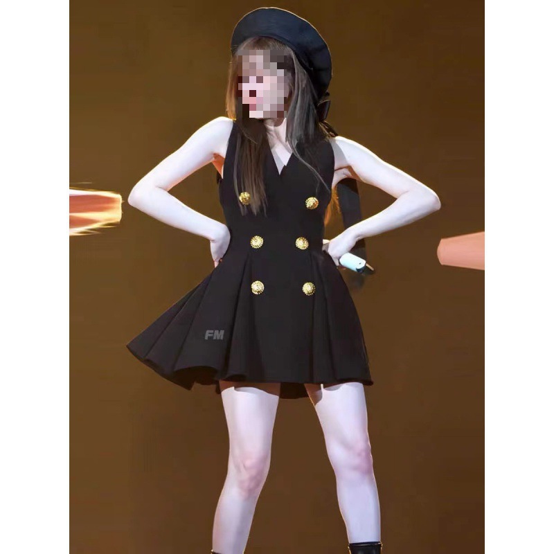 | nameOriginal | Wang Xinling Concert with Elegant Light Luxury Black Sleeveless dress Women's Waist Pleated Short Skirt 2024 New |