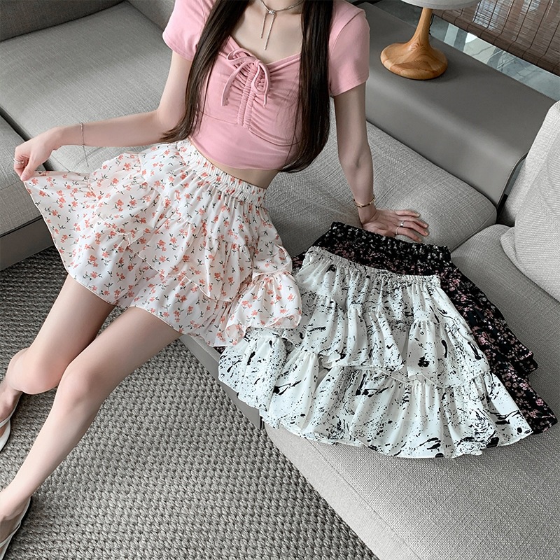 | nameOriginal | elastic waist floral cake skirt women's ballet style pleated skirt skirt women's 2024 summer new short skirt A- line skirt |