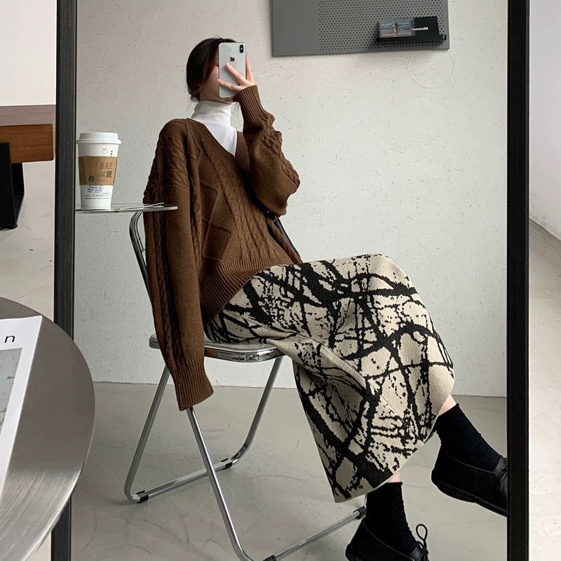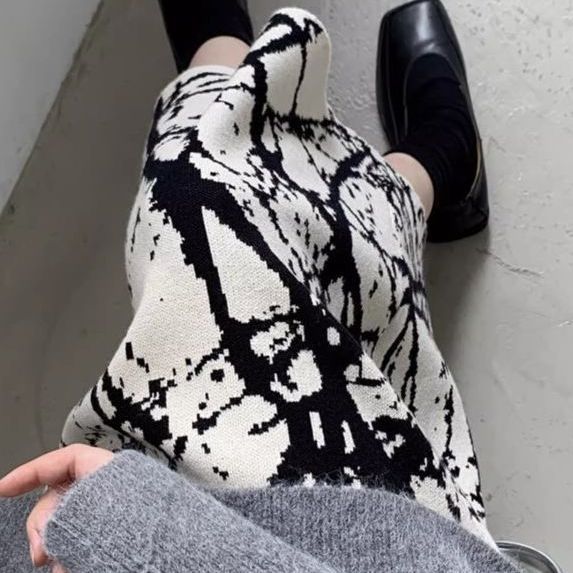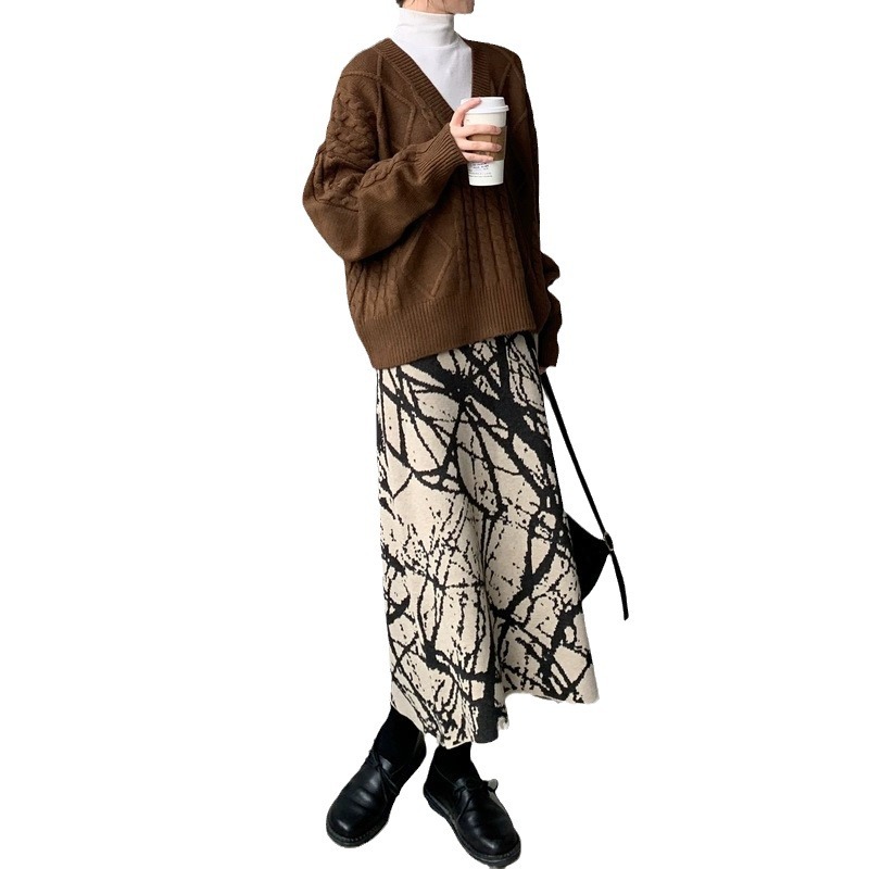 | nameOriginal | Vintage Printed Knitted Skirt Women's Autumn and Winter Mid-length High Waist Slimming A- line Skirt Elegant All-match Hip Skirt |
