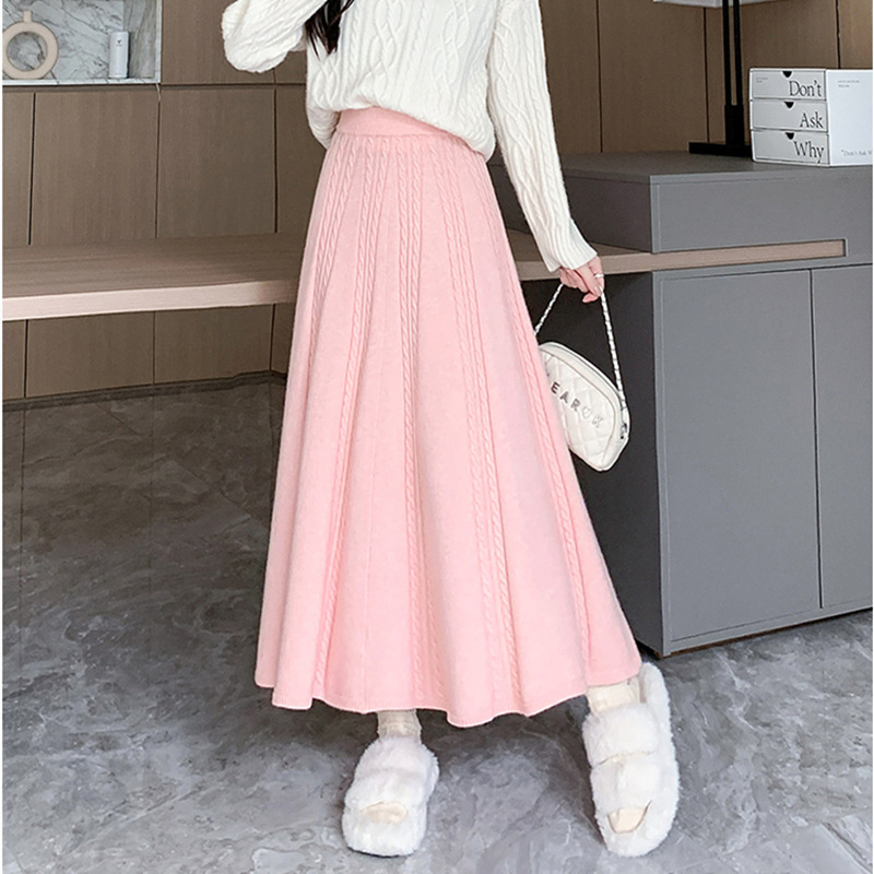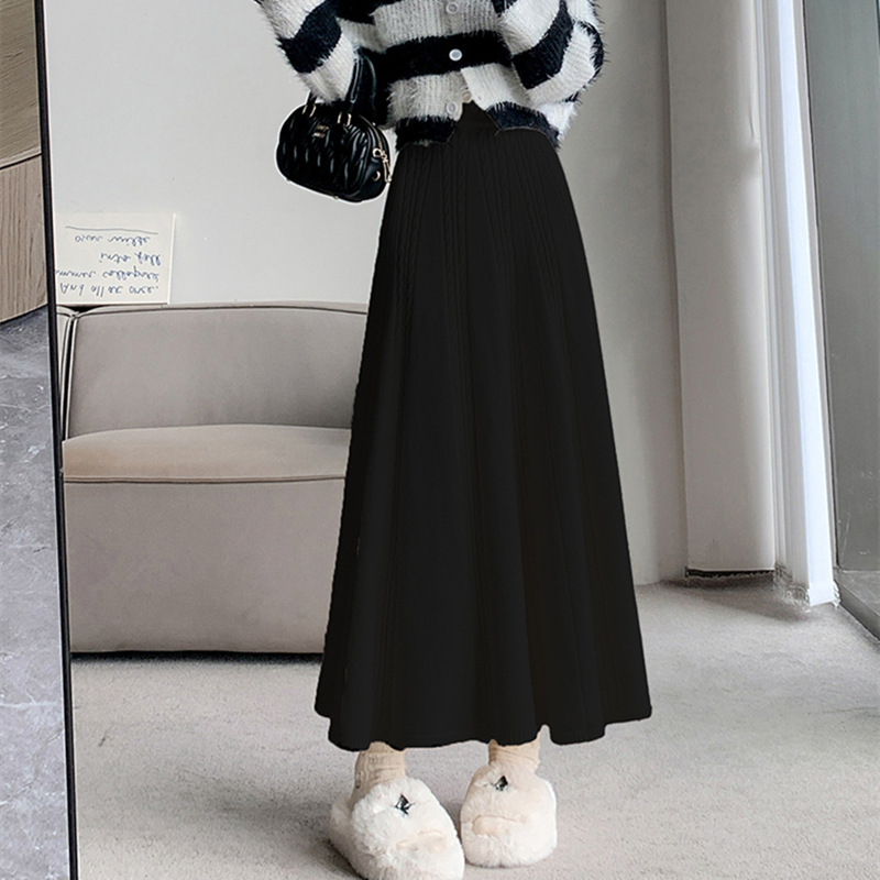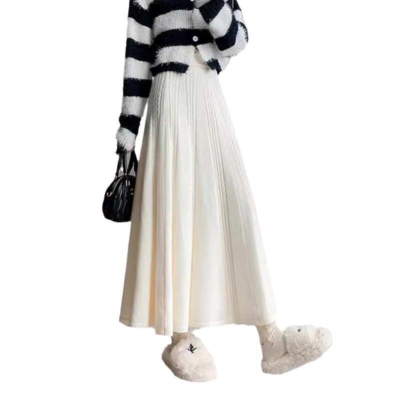 | nameOriginal | Korean style twist knitted skirt women's 2024 autumn and winter mid-length high waist A- line skirt slimming pleated umbrella skirt for women |
