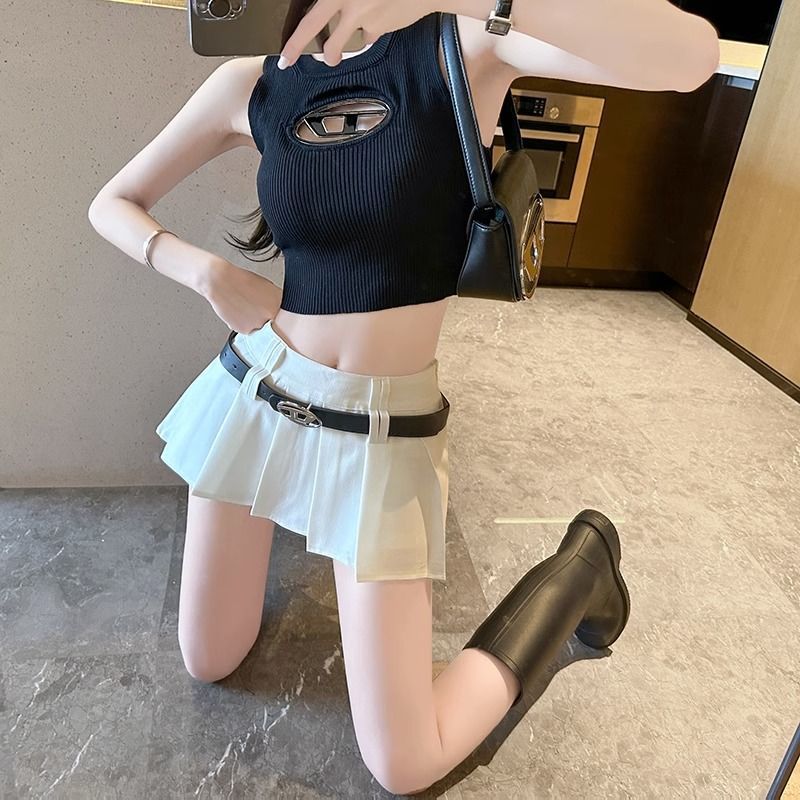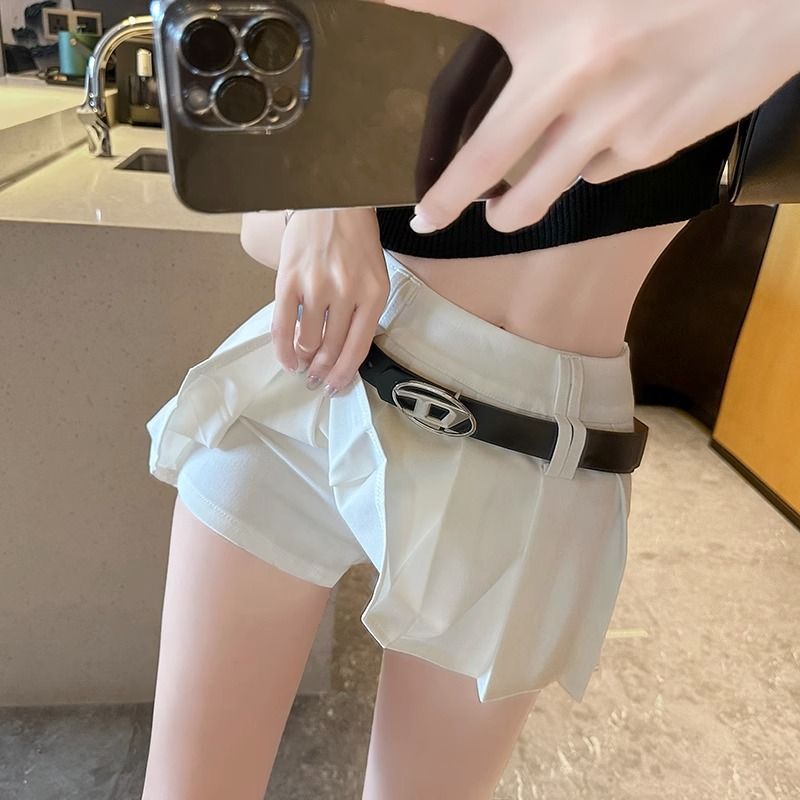 Summer White Pleated Skirt Women’s High Waist Slim-fit Spice Girl Short Skirt Anti-light A- line Skirt Small Culottes