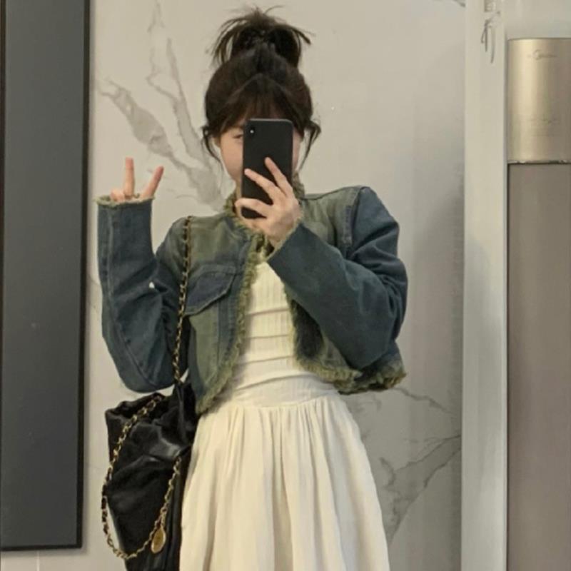 | nameOriginal | Elegant Retro Long-sleeved Short Denim Coat Women's Loose Slimming Denim Jacket Casual All-match Denim Top Trendy |