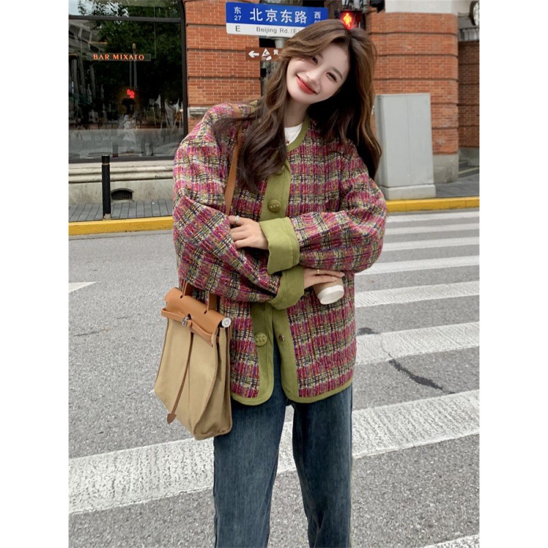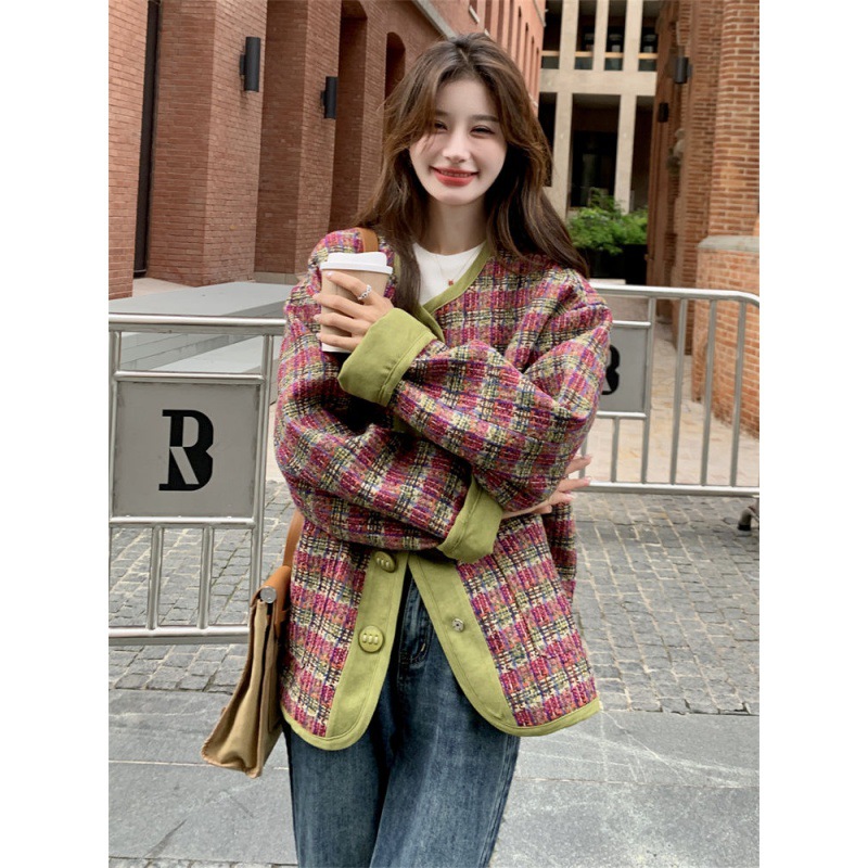 | nameOriginal | Green stitching tweed Chanel style coat for women Spring and Autumn 2023 new light mature style Maillard high-grade top |