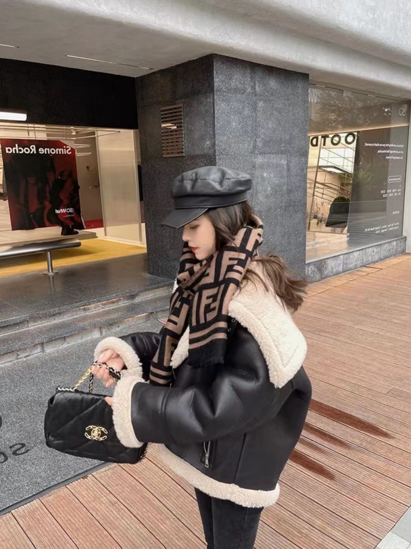| nameOriginal | Women's fur coat short winter 2023 new Korean style large lapel motorcycle clothing lamb fur collar leather coat |